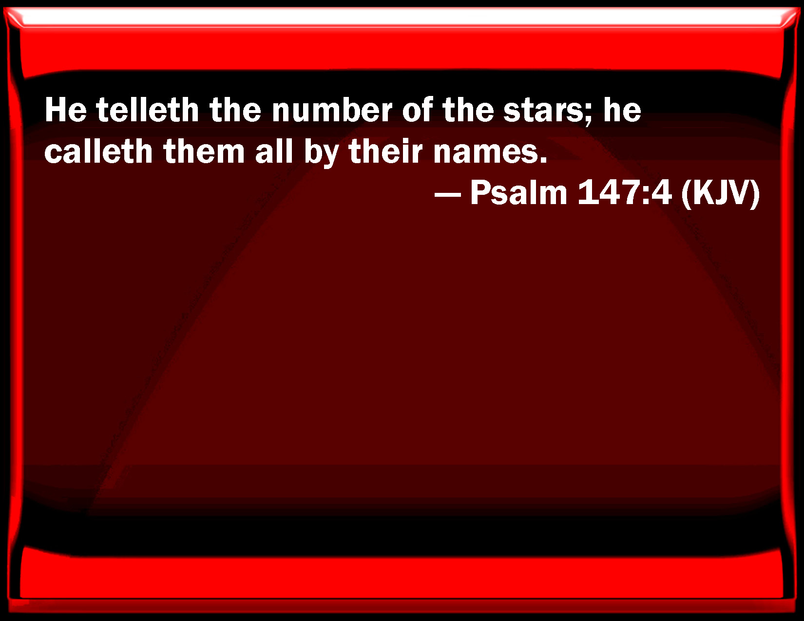 Psalm 147:4 He tells the number of the stars; he calls them all by their names.