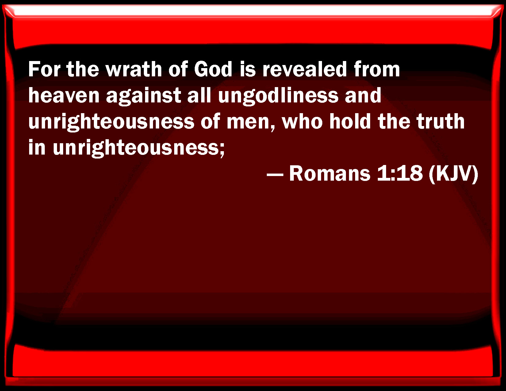 Romans 1:18 For the wrath of God is revealed from heaven against all ungodliness and unrighteousness of men, who hold the truth in unrighteousness;