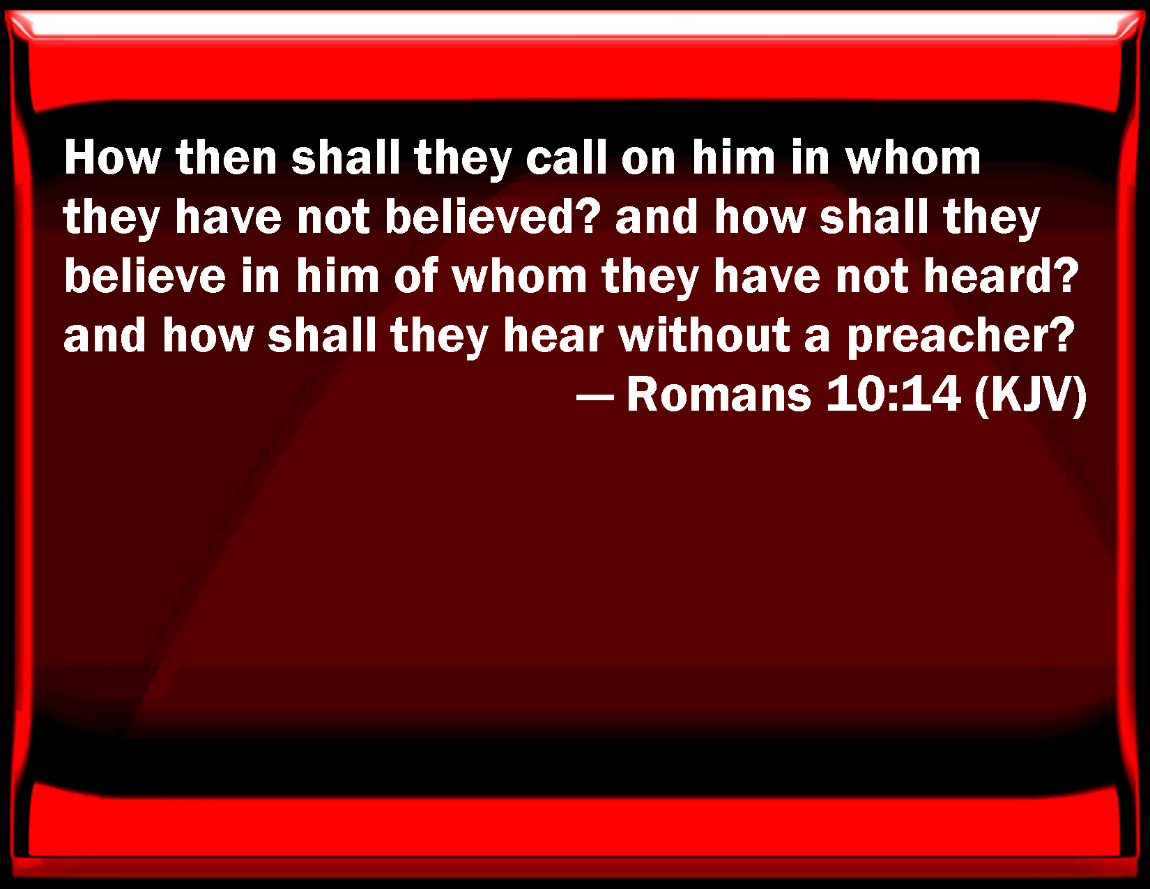 How then shall they call on him, in whom they have not believed? Or how shall they believe him, of whom they have not heard? And how shall they hear, without a preacher?
