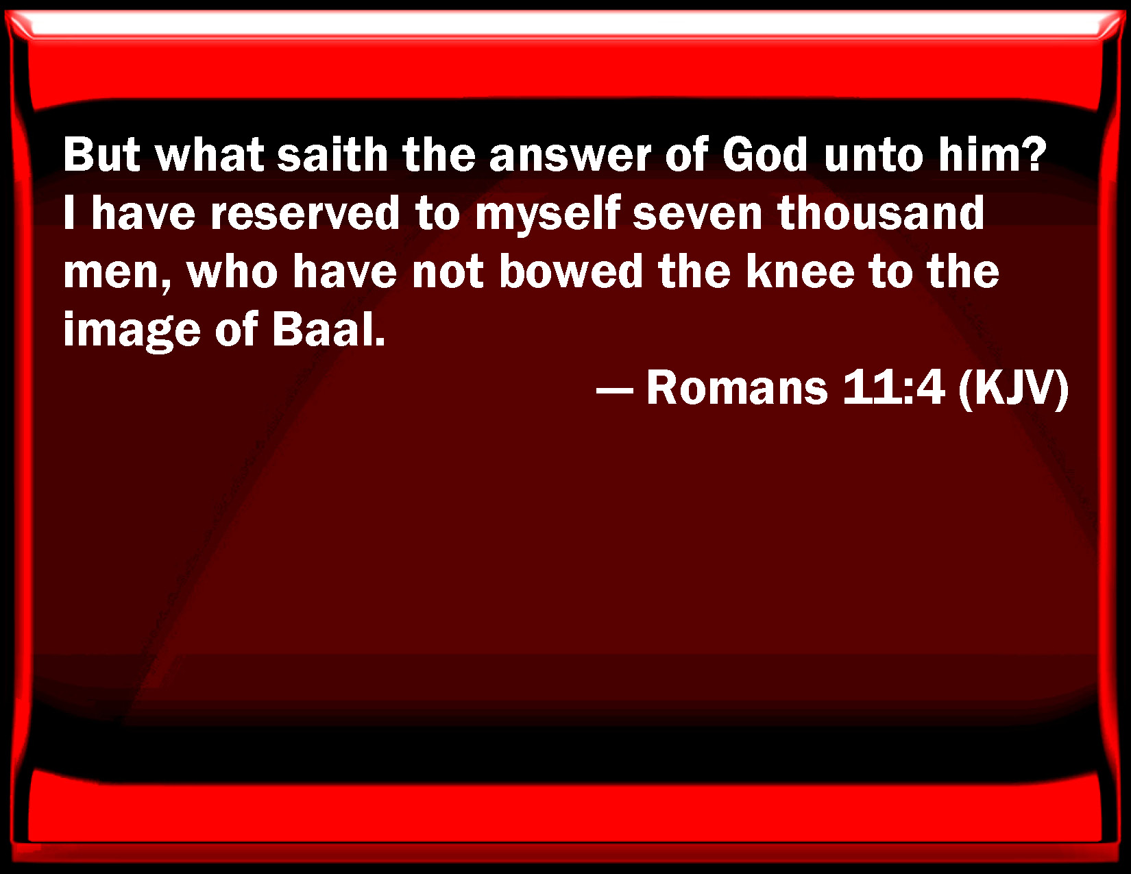 Romans 11:4 But what said the answer of God to him? I have reserved to myself seven thousand men, who have not bowed the knee to the image of Baal.