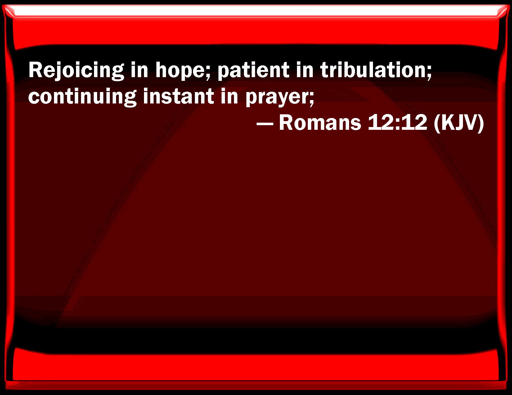 Romans 12:12 Rejoicing in hope; patient in tribulation; continuing instant in prayer;