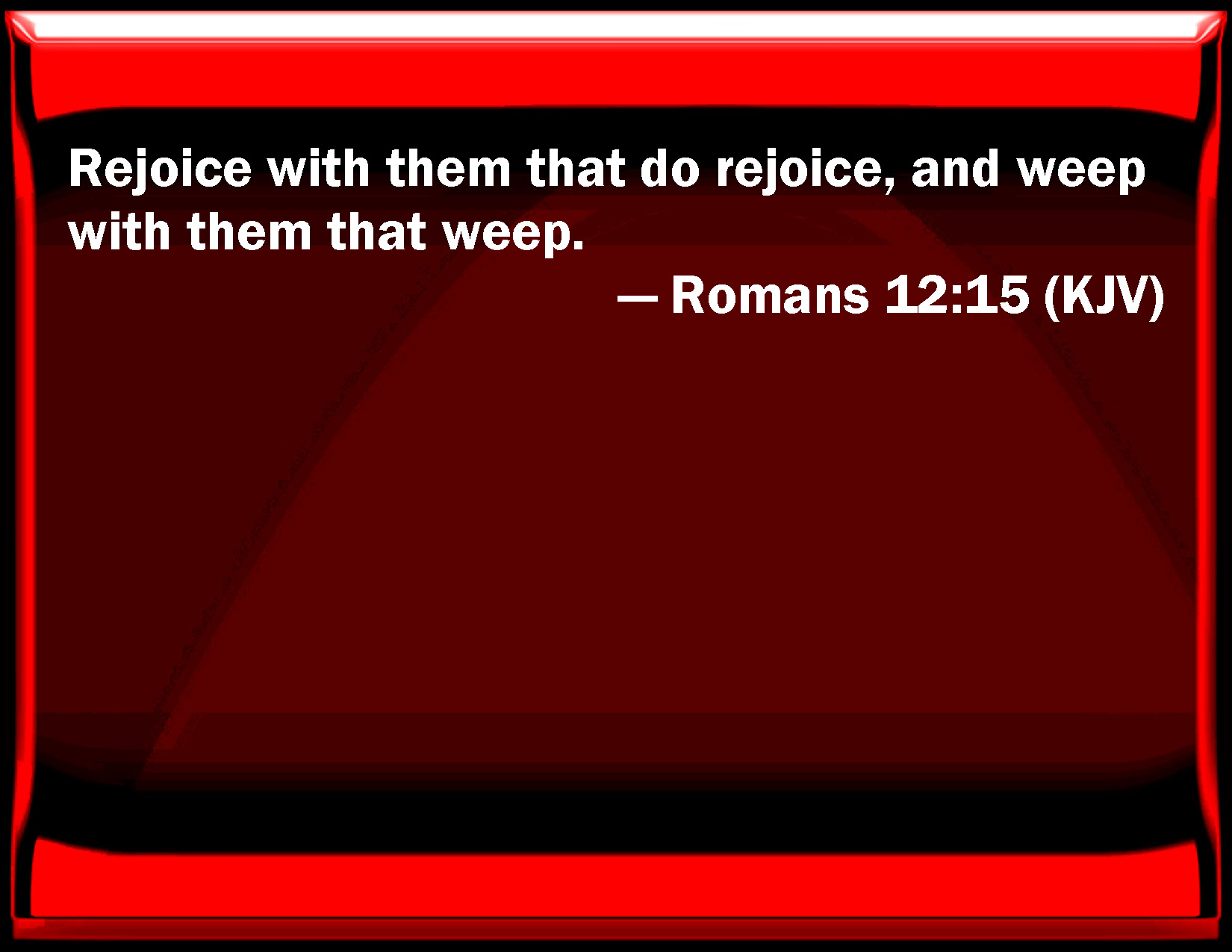 Romans 12:15 Rejoice with them that do rejoice, and weep with them that weep.