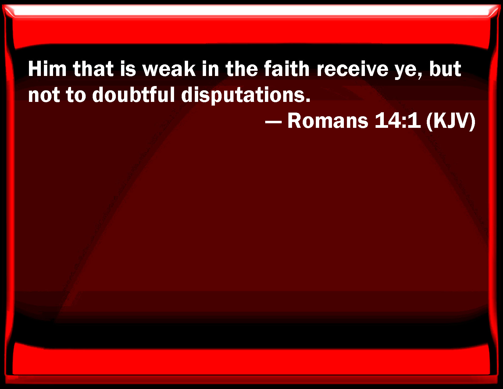 Romans 14:1 Him that is weak in the faith receive you, but not to doubtful disputations.