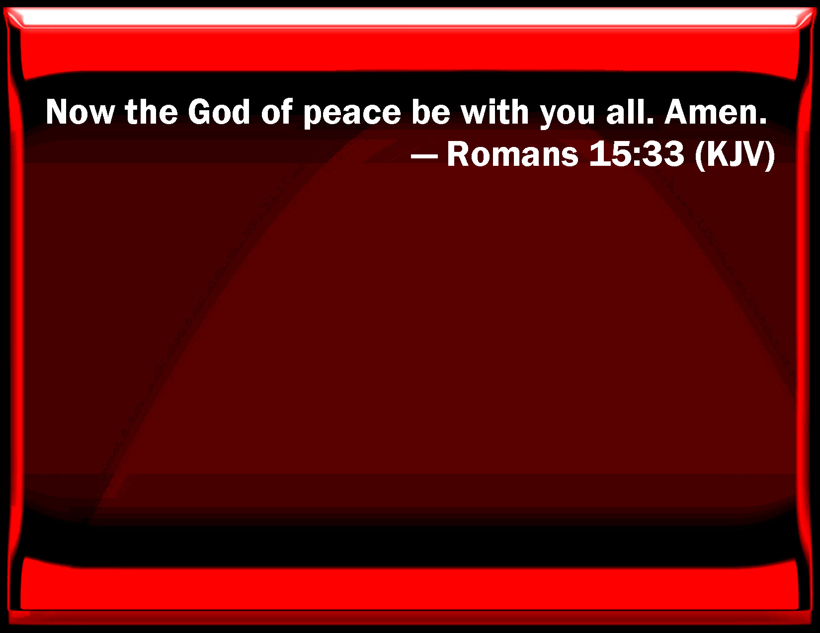 Romans 15:33 Now the God of peace be with you all. Amen.
