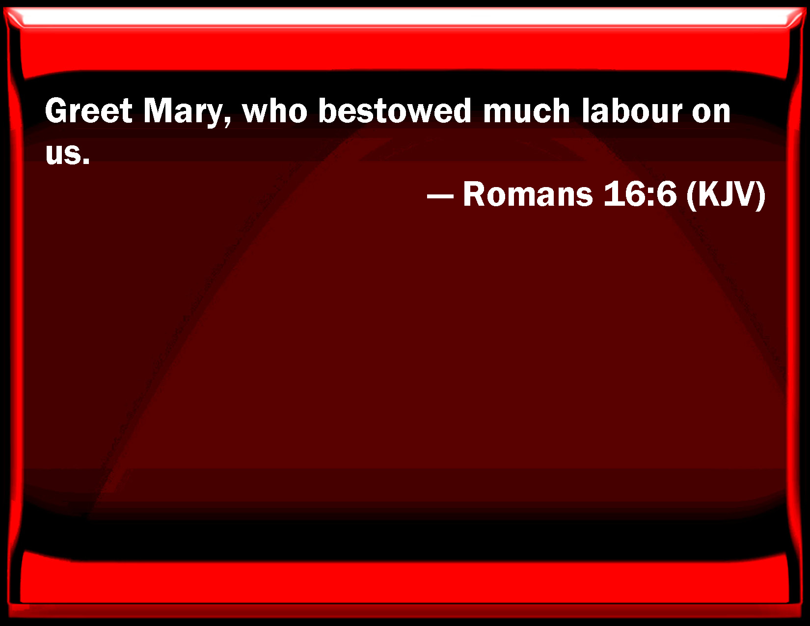 Romans 16:6 Greet Mary, who bestowed much labor on us.
