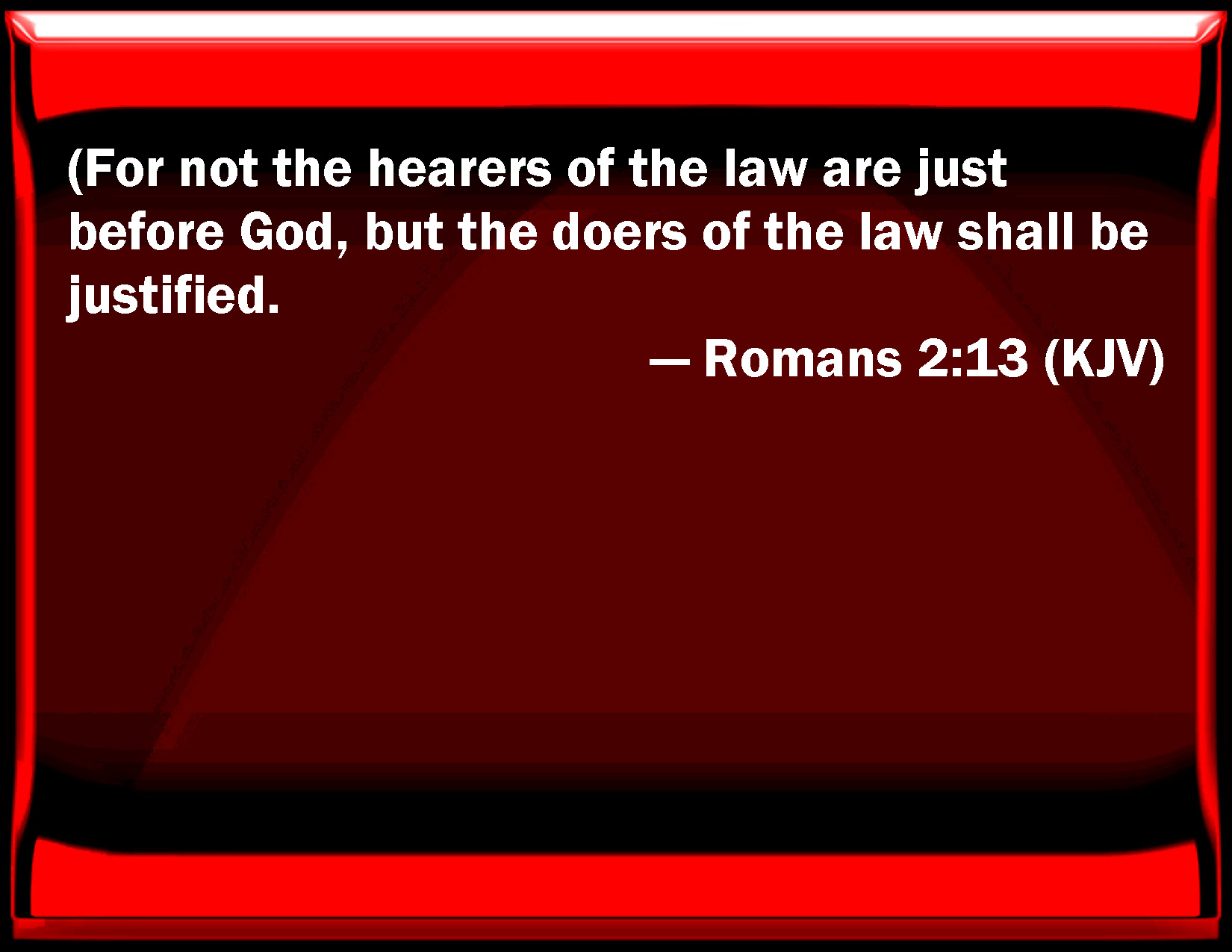 Romans 2:13 (For not the hearers of the law are just before God, but the doers of the law shall be justified.