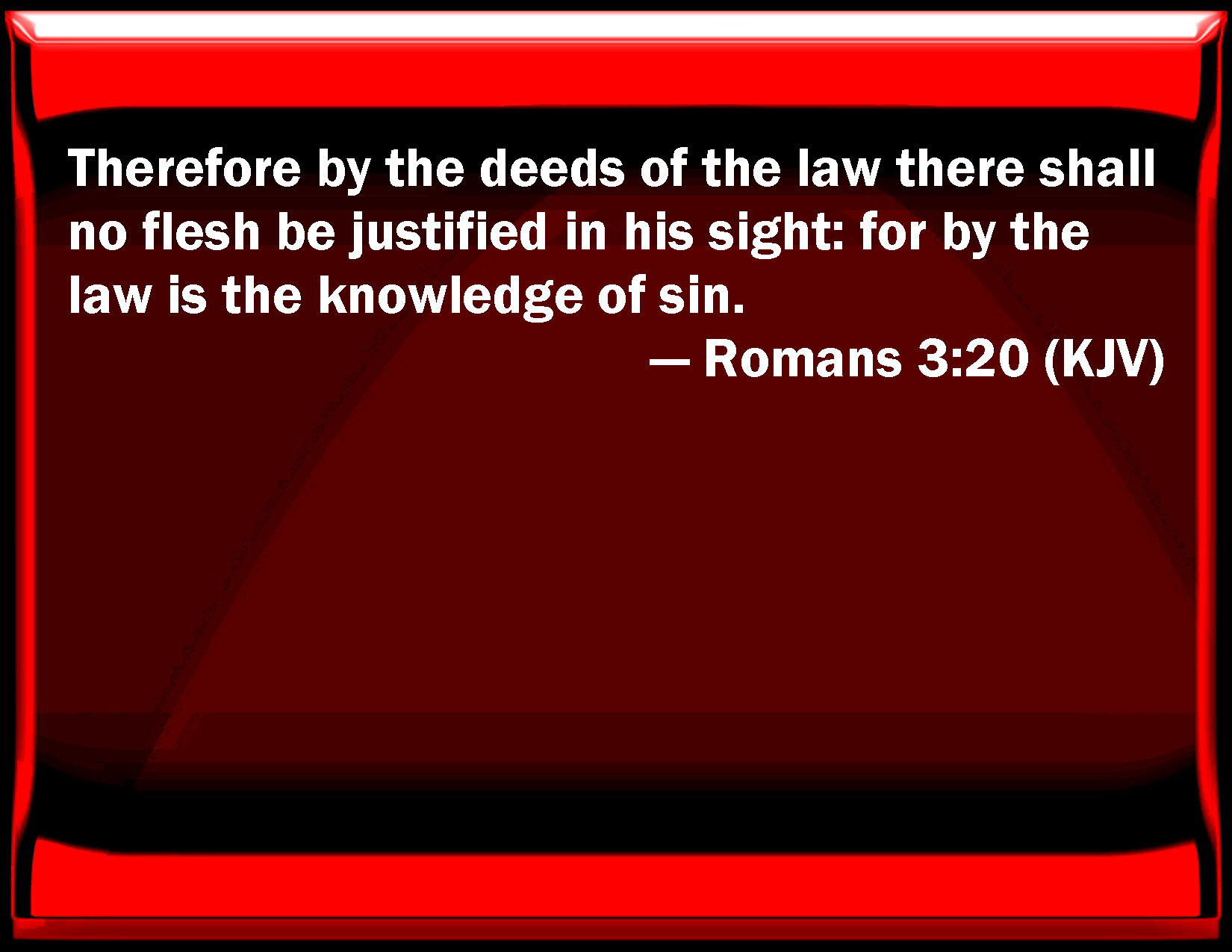 Romans 3:20 Therefore by the deeds of the law there shall no flesh be justified in his sight: for by the law is the knowledge of sin.