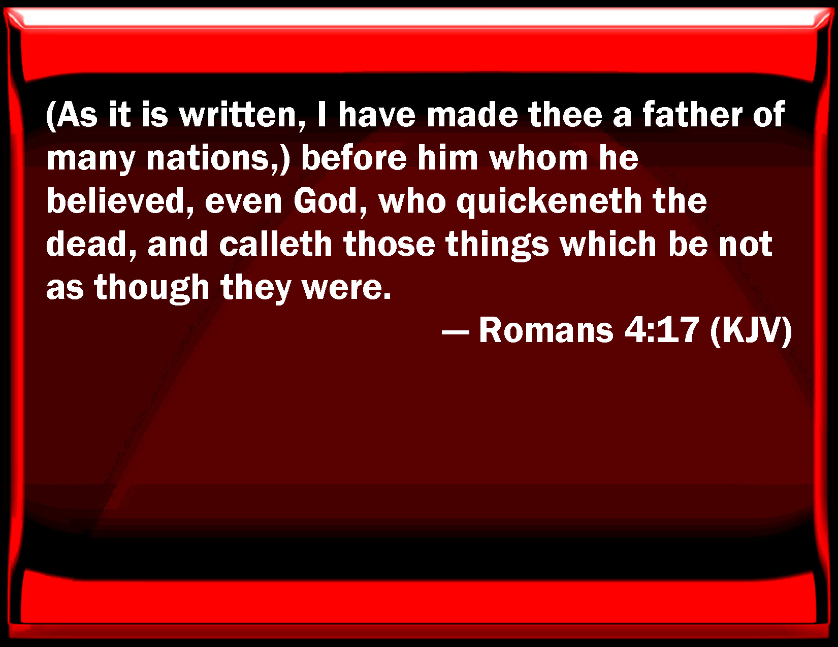 Romans 4:17 (As it is written, I have made you a father of many nations,) before him whom he believed, even God, who vivifies the dead, and calls those things which be not as though they were.