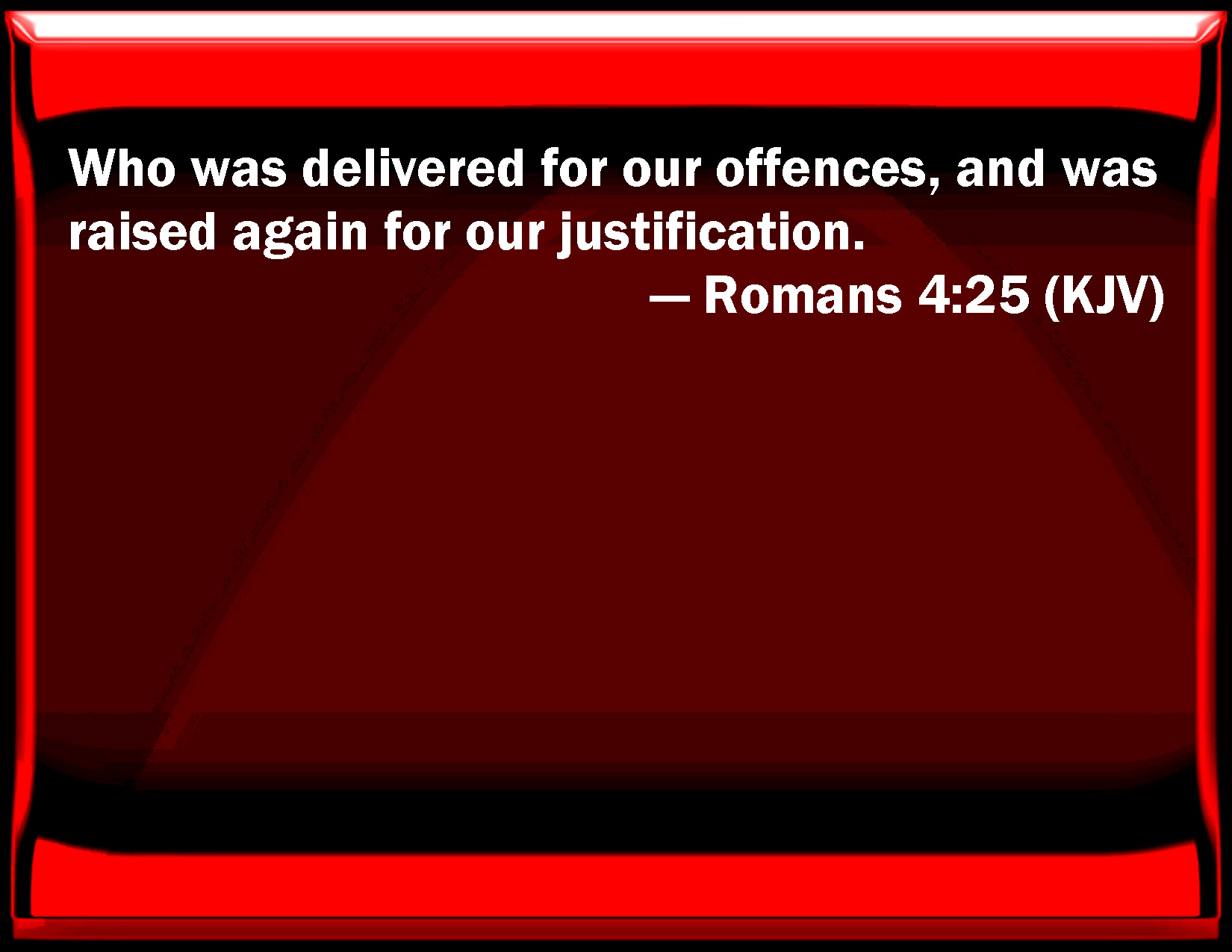 Romans 4:25 Who was delivered for our offenses, and was raised again for our justification.
