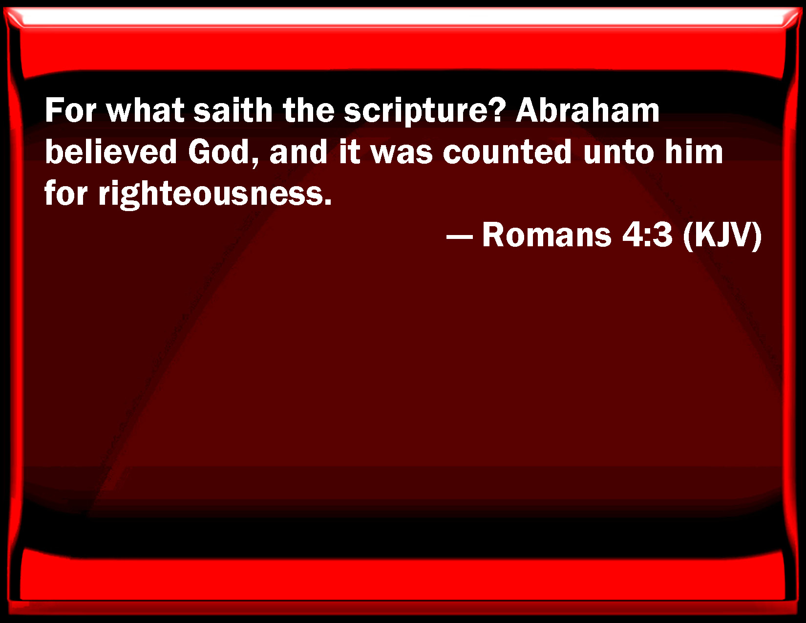 Romans 4:3 For what said the scripture? Abraham believed God, and it was counted to him for righteousness.