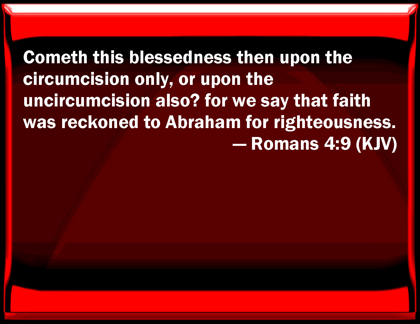 Romans 4:9 Comes this blessedness then on the circumcision only, or on the uncircumcision also? for we say that faith was reckoned to Abraham for righteousness.