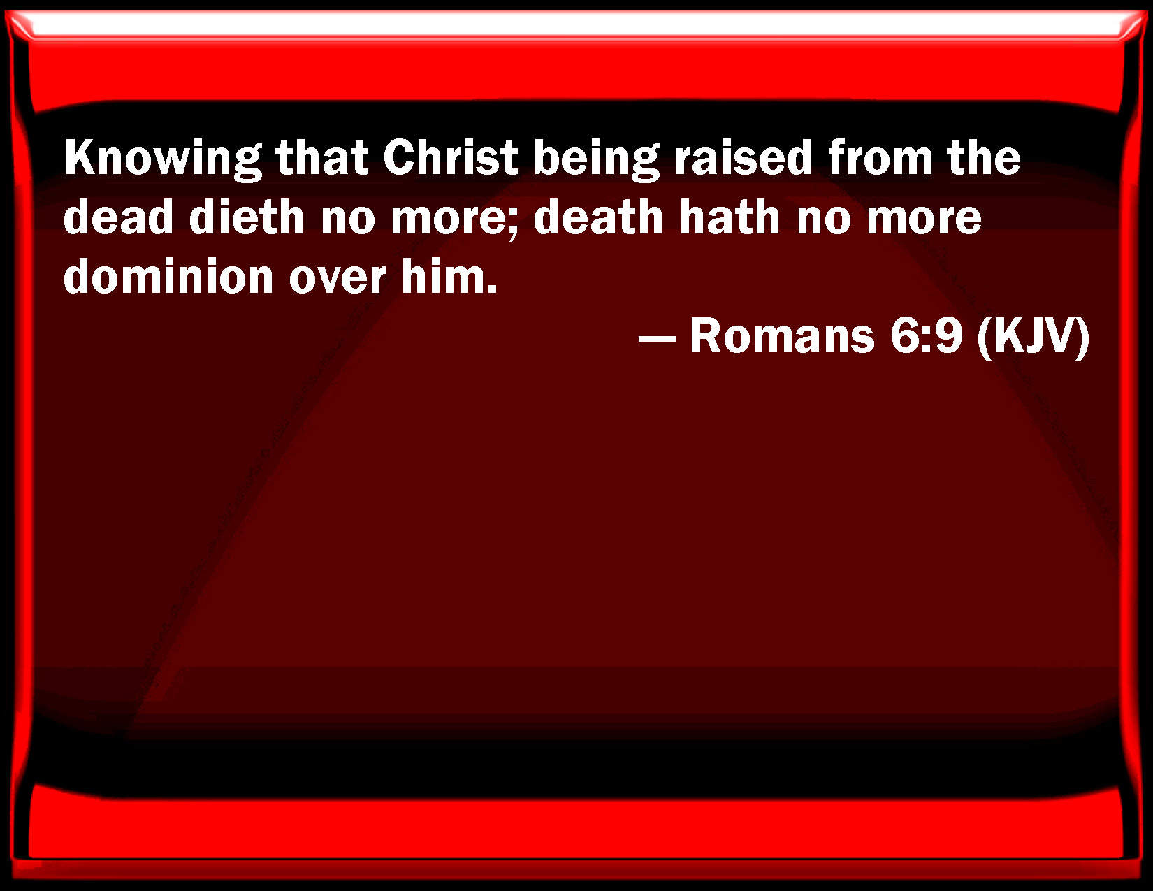 Knowing that Christ being raised from the dead dieth no more; death hath no more dominion over him.