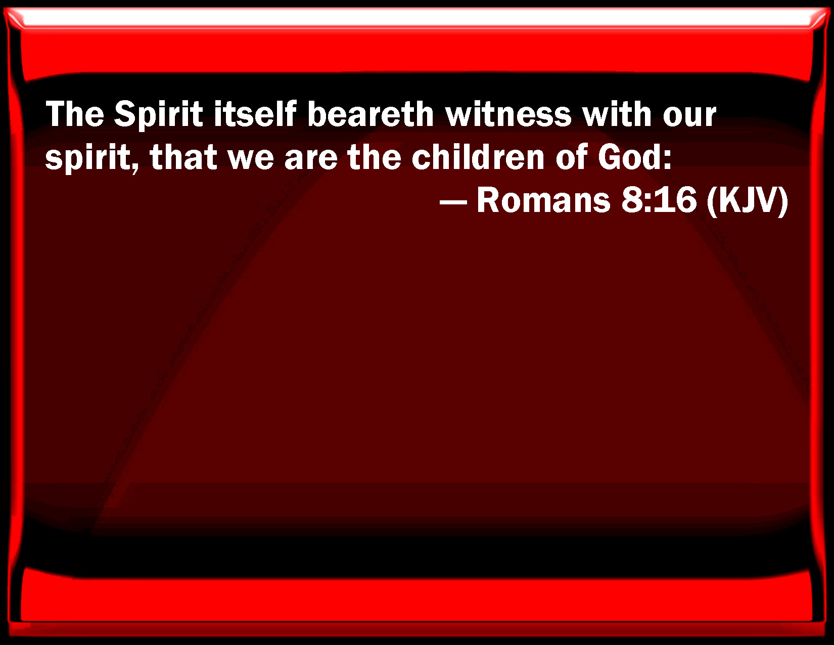 Romans 8:16 The Spirit itself bears witness with our spirit, that we are the children of God: