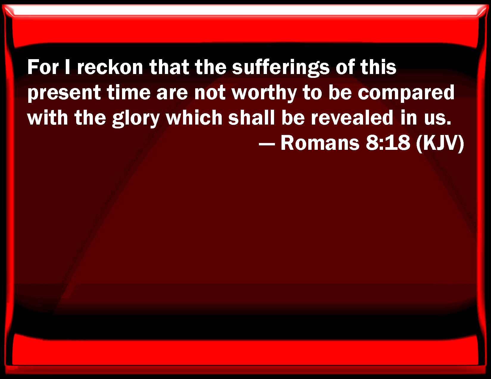 Romans 8:18 For I reckon that the sufferings of this present time are not worthy to be compared with the glory which shall be revealed in us.