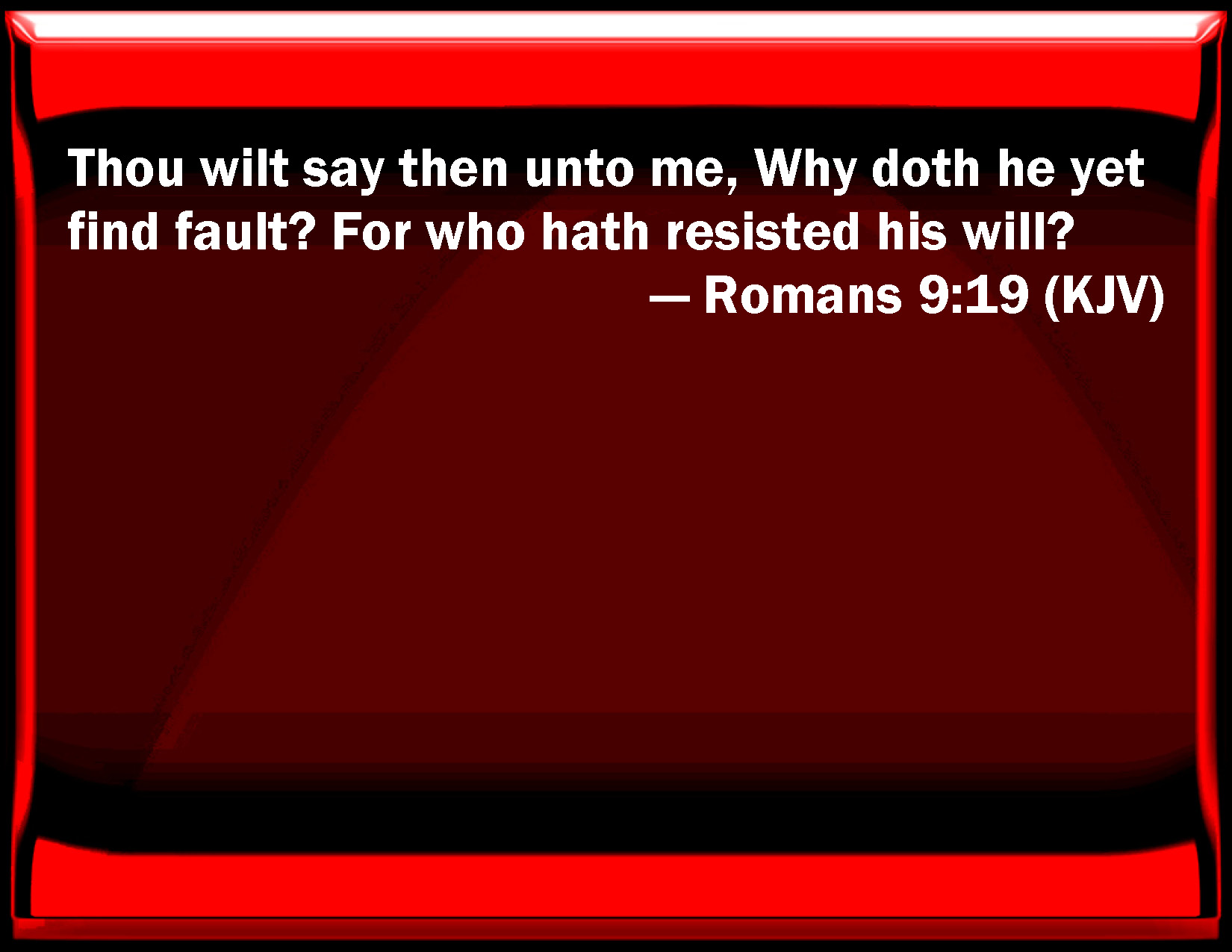 Romans 9:19 You will say then to me, Why does he yet find fault? For who has resisted his will?