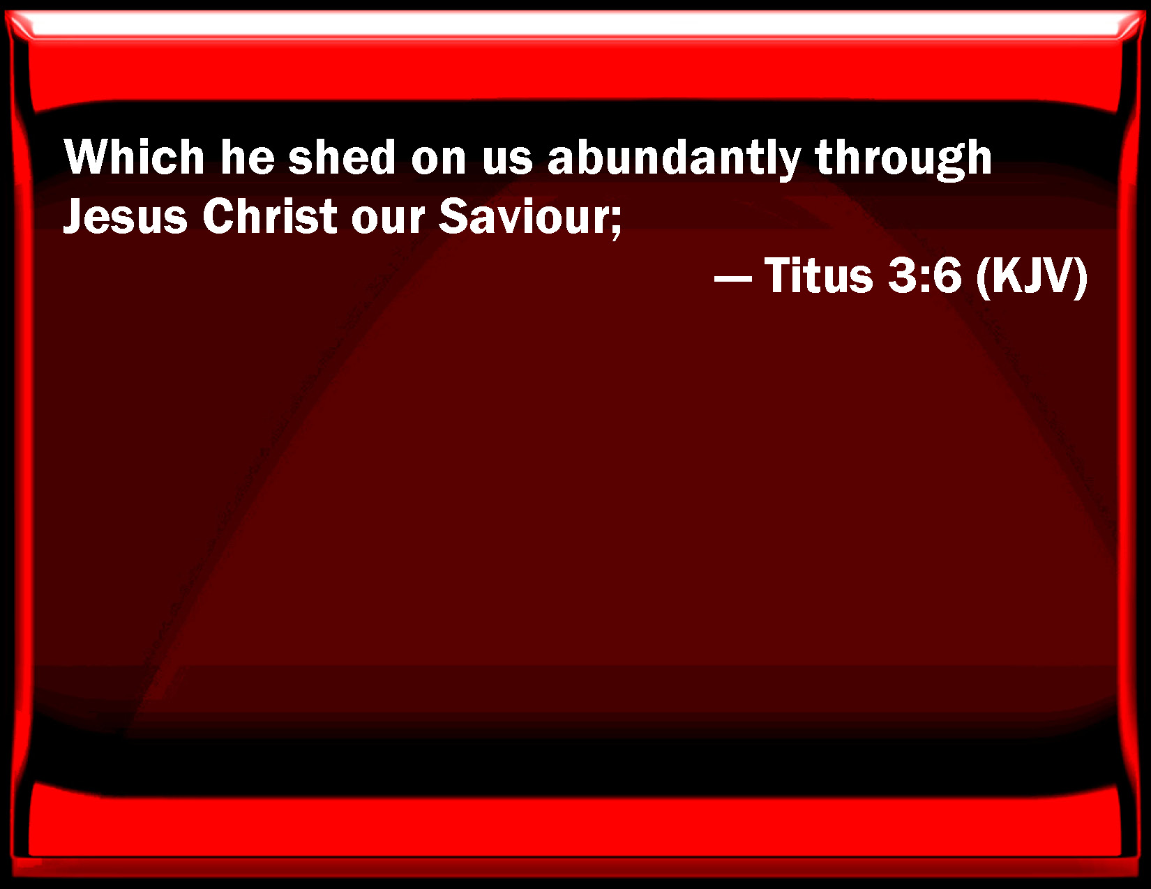 Titus 3:6 Which he shed on us abundantly through Jesus Christ our Savior;