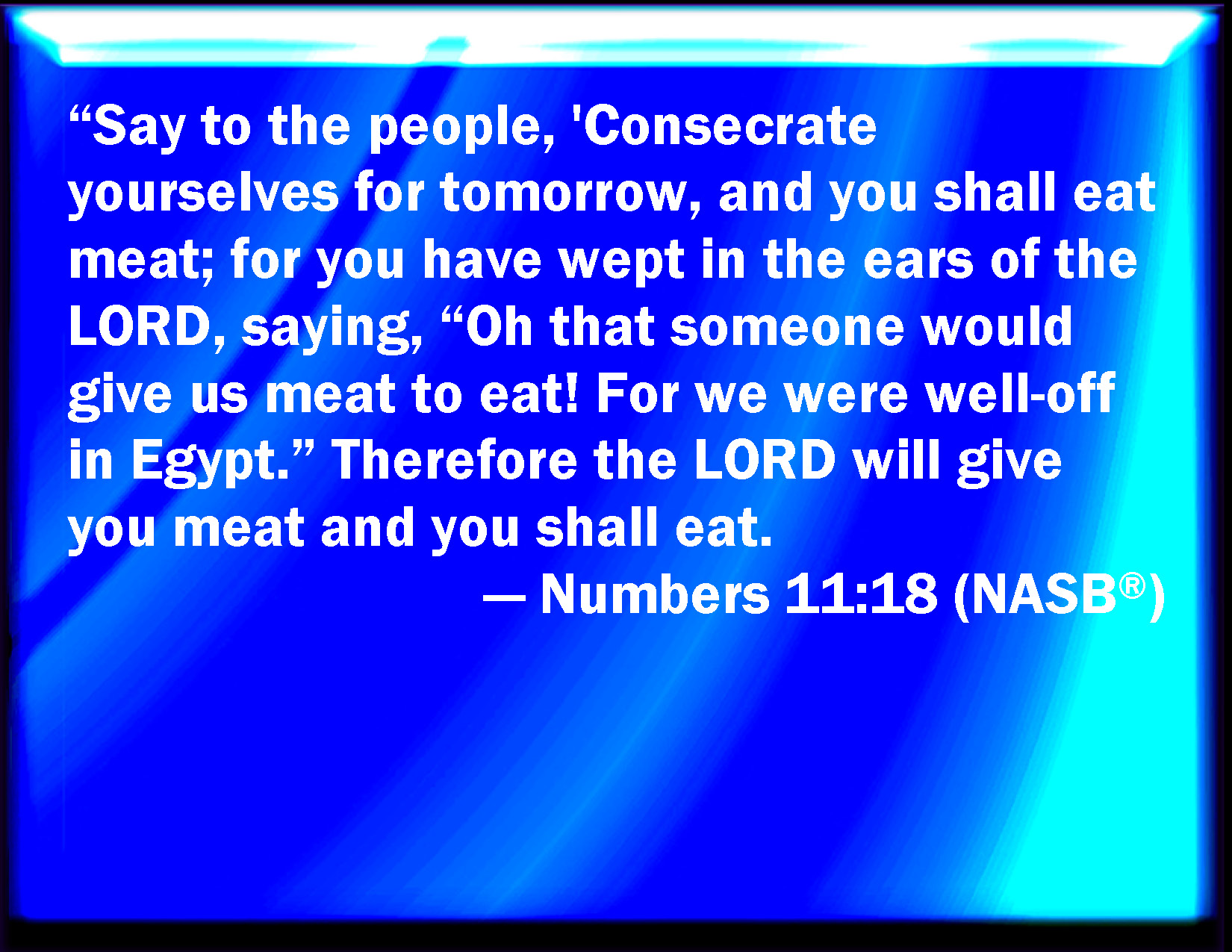 Numbers 11:18 And say you to the people, Sanctify yourselves against to morrow, and you shall eat flesh: for you have wept in the ears of the LORD, saying, Who shall give us flesh to eat? for it was well with us in Egypt: therefore the LORD will give you flesh, and you shall eat.