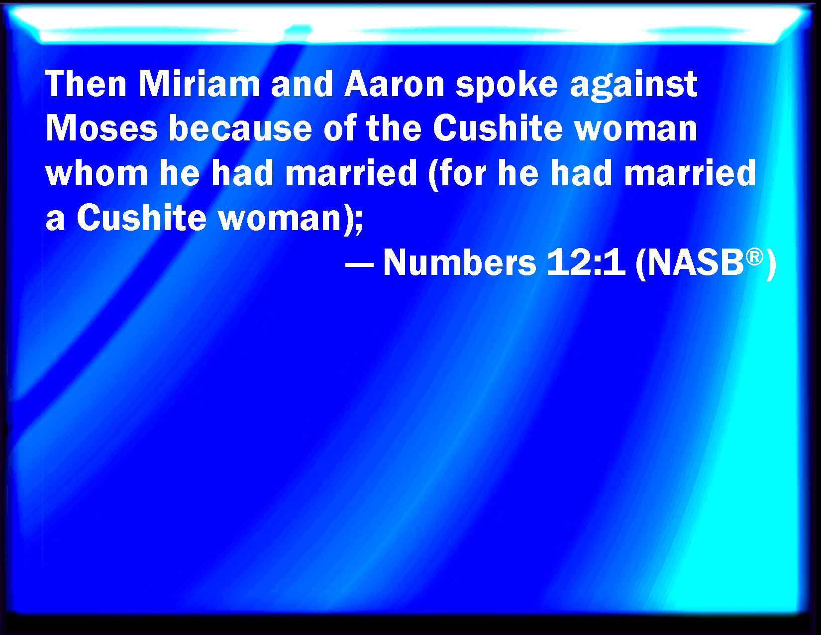 And Miriam and Aaron spake against Moses because of the Cushite woman whom he had married: for he had married a Cushite woman.