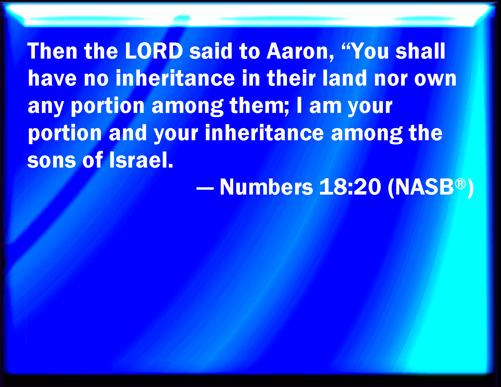 Numbers 18:20 And the LORD spoke to Aaron, You shall have no inheritance in their land, neither shall you have any part among them: I am your part and your inheritance among the children of Israel.