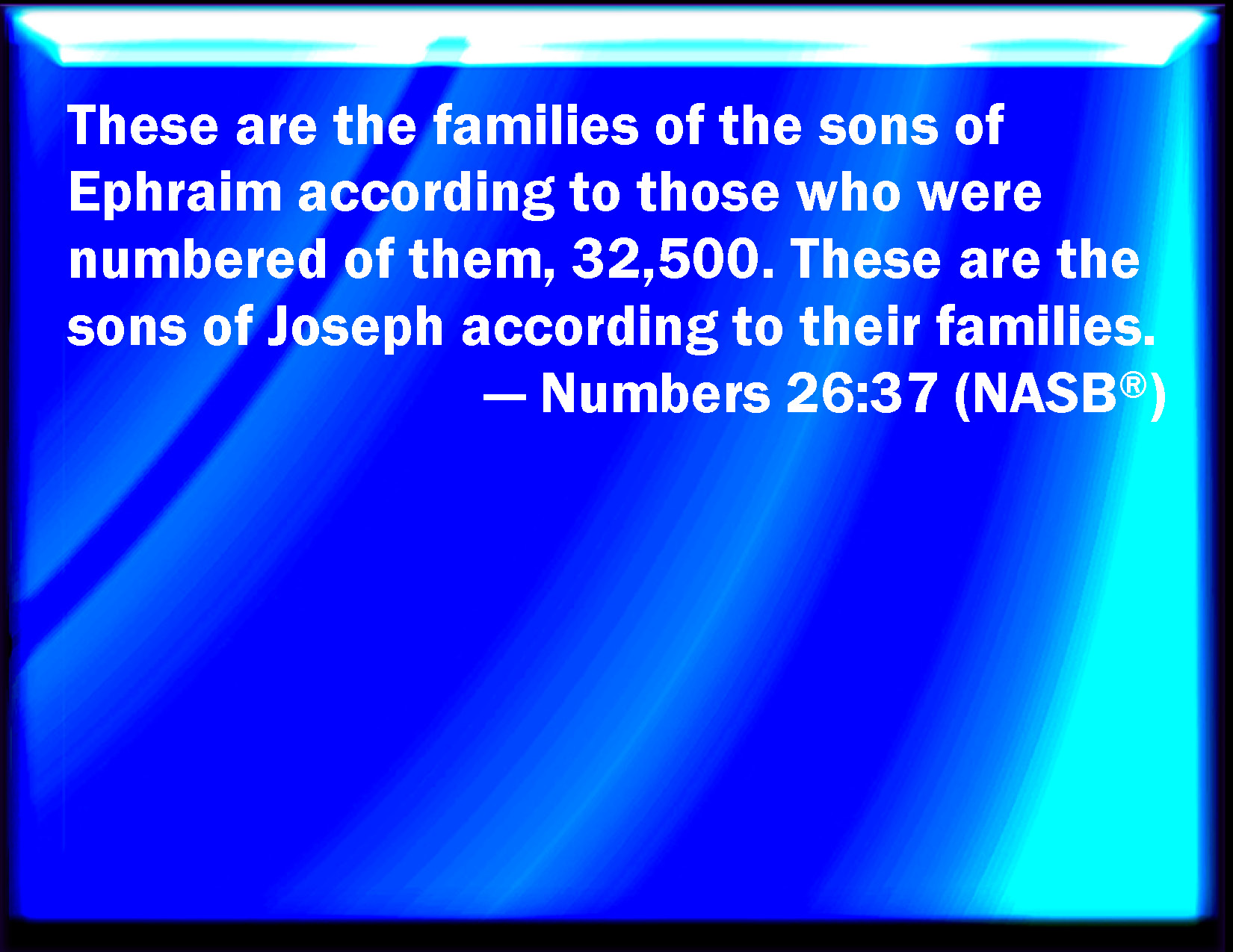 Numbers 26:37 These are the families of the sons of Ephraim according to those that were numbered of them, thirty and two thousand and five hundred. These are the sons of Joseph after their families.