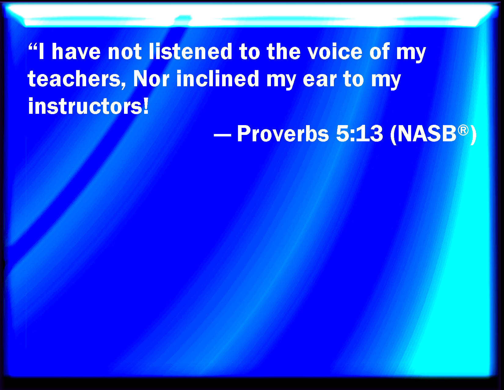 Proverbs 5:13 And have not obeyed the voice of my teachers, nor inclined my ear to them that instructed me!