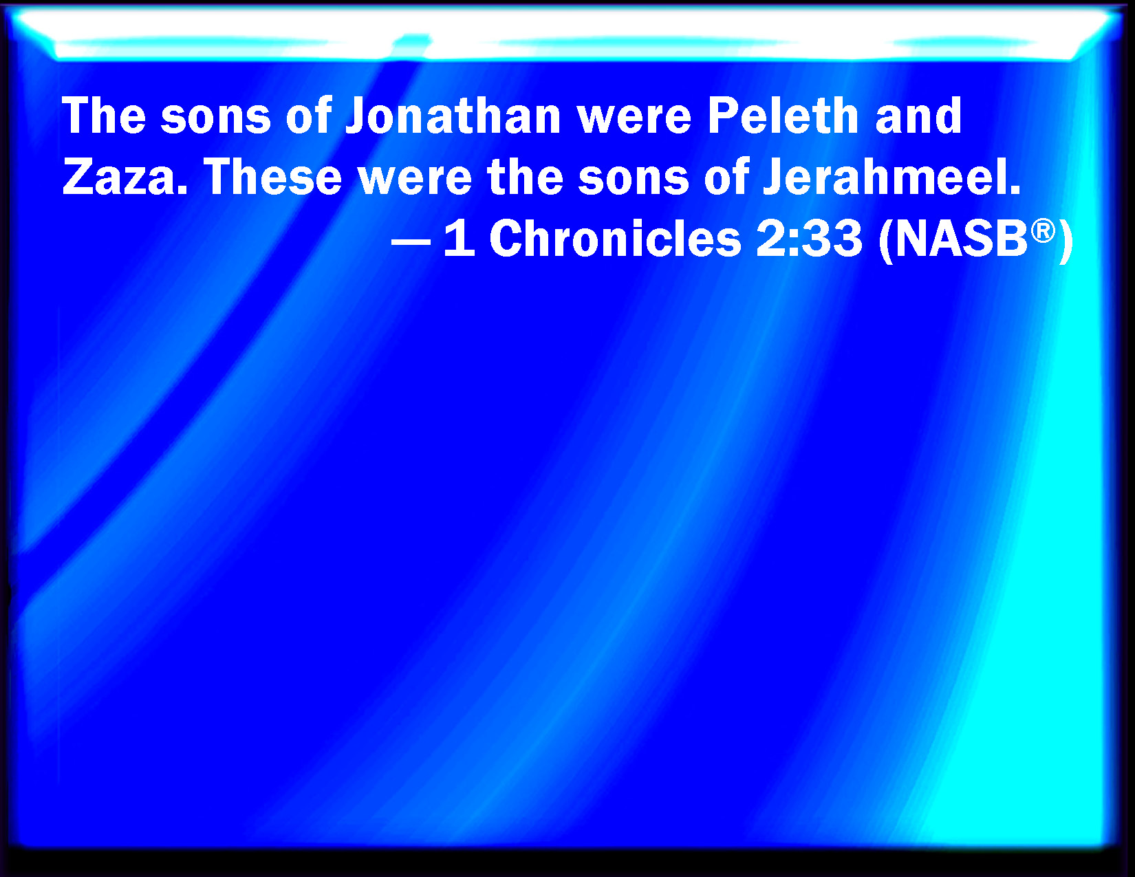 1 Chronicles 2:33 And the sons of Jonathan; Peleth, and Zaza. These were the sons of Jerahmeel.