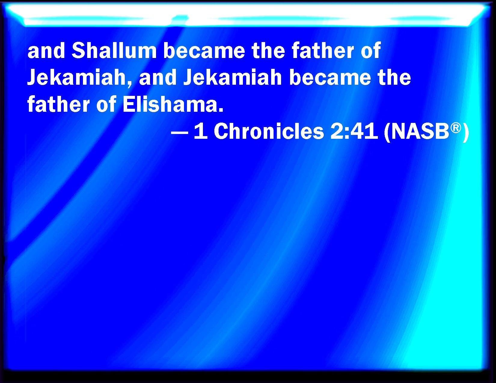 1 Chronicles 2:41 And Shallum begat Jekamiah, and Jekamiah begat Elishama.