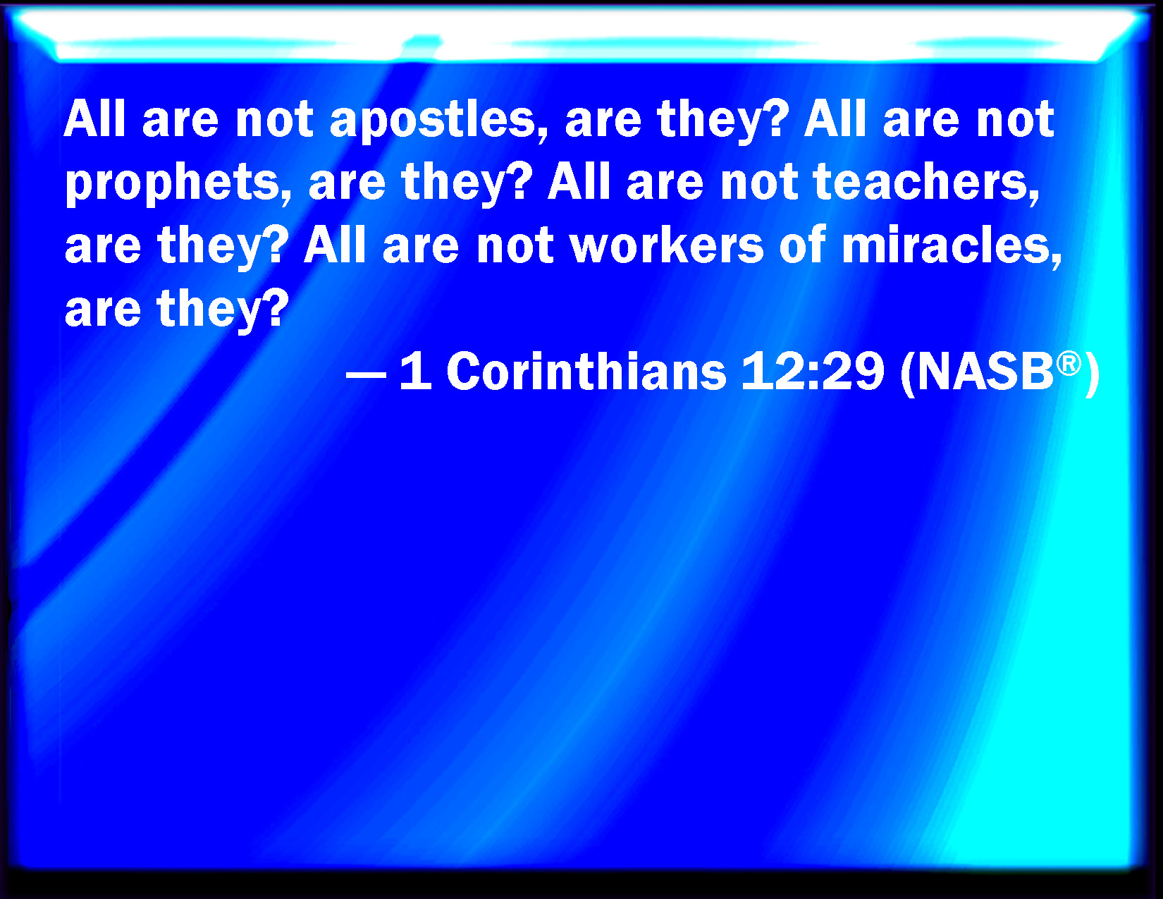 1 Corinthians 12:29 Are all apostles? are all prophets? are all teachers? are all workers of miracles?