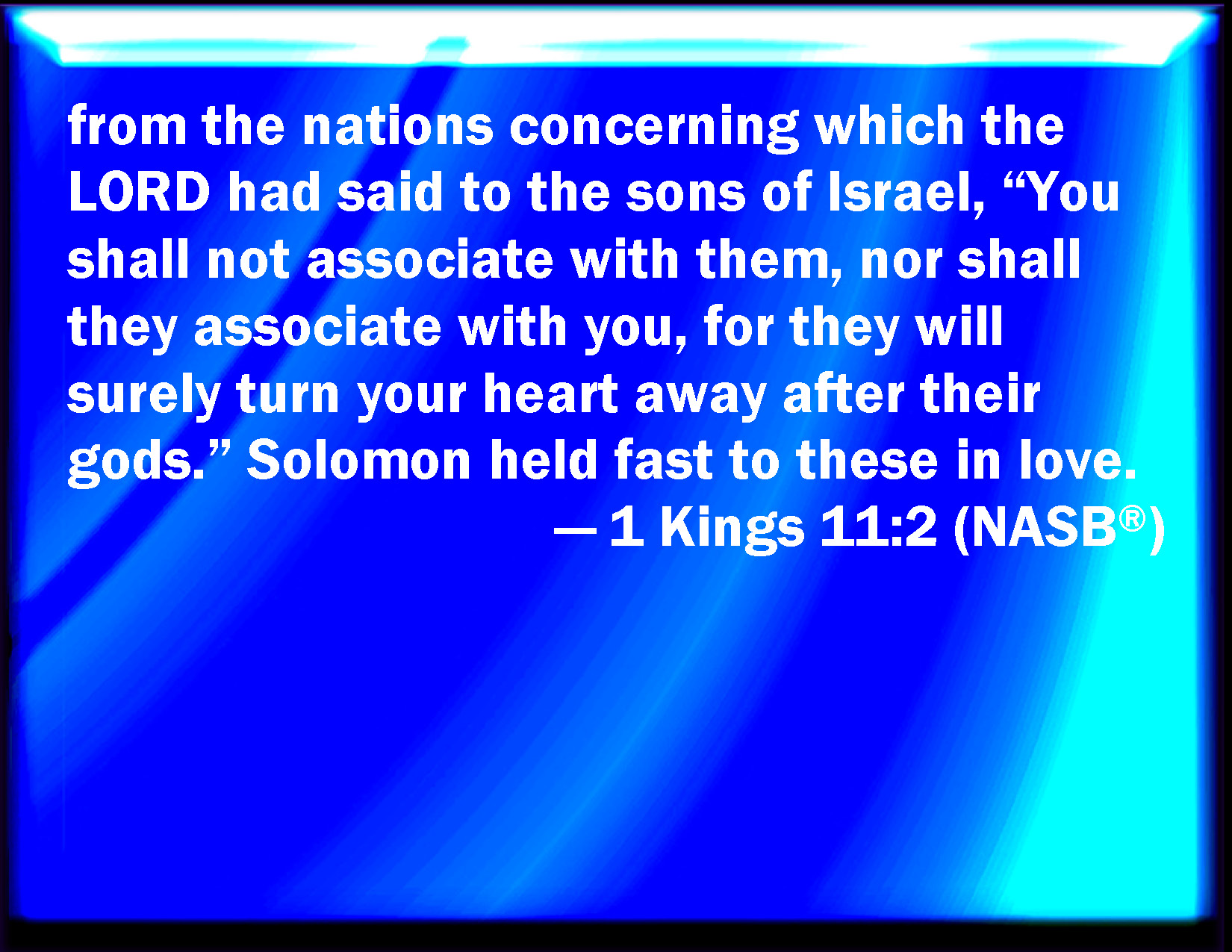 1 Kings 11:2 Of the nations concerning which the LORD said to the children of Israel, You shall not go in to them, neither shall they come in to you: for surely they will turn away your heart after their gods: Solomon joined to these in love.