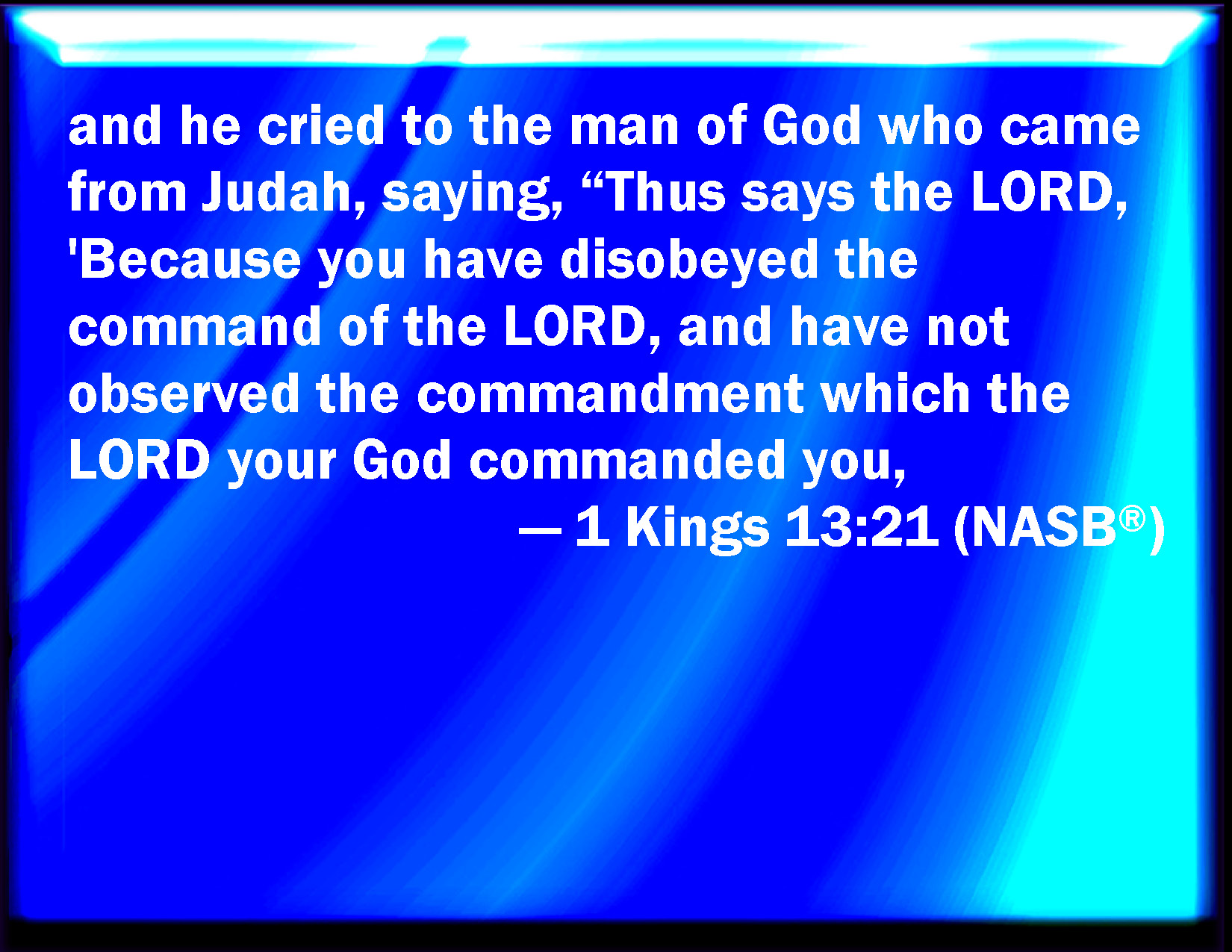 1 Kings 13:21 And he cried to the man of God that came from Judah, saying, Thus said the LORD, For as much as you have disobeyed the mouth of the LORD, and have not kept the commandment which the LORD your God commanded you,
