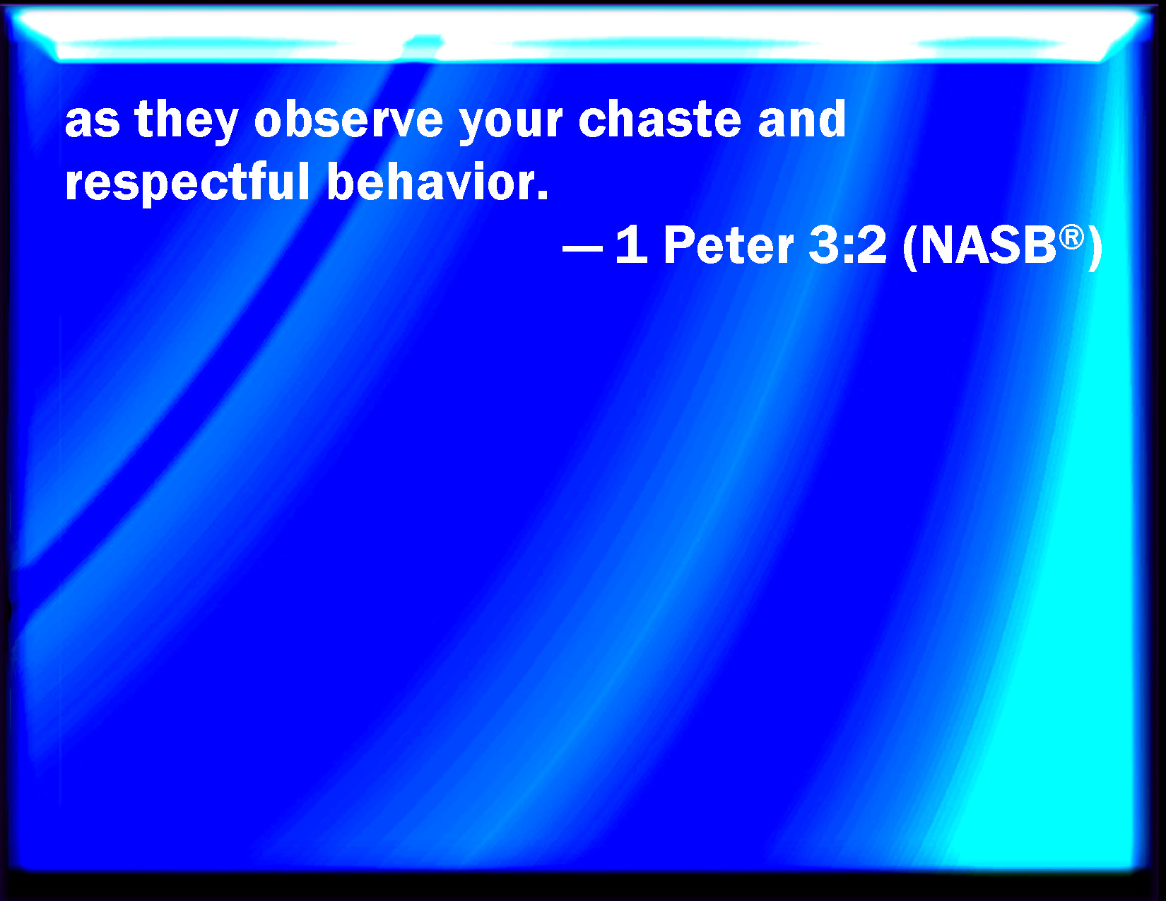 1 Peter 3:2 While they behold your chaste conversation coupled with fear.