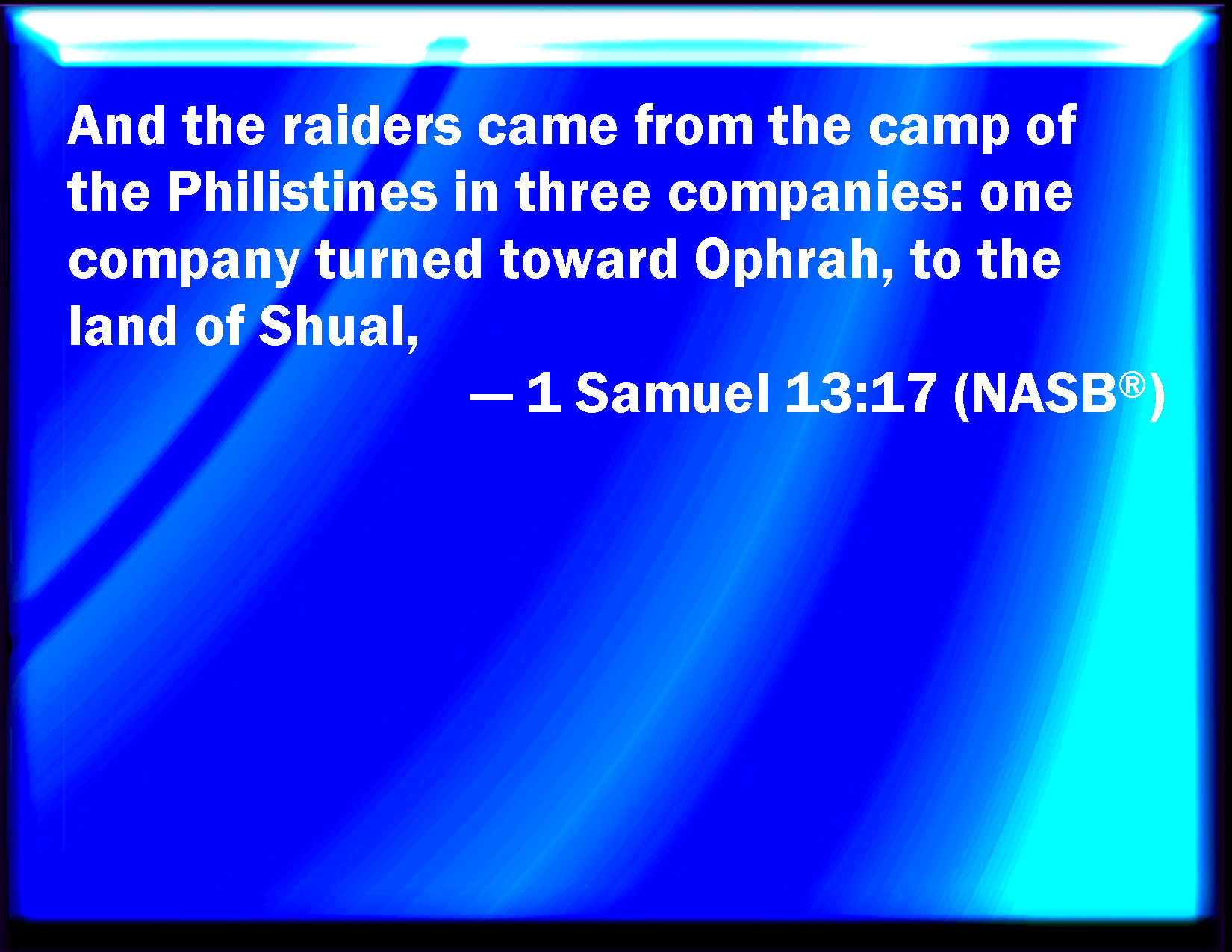 And the destroyer goeth out from the camp of the Philistines — three detachments; the one detachment turneth unto the way of Ophrah, unto the land of Shual;