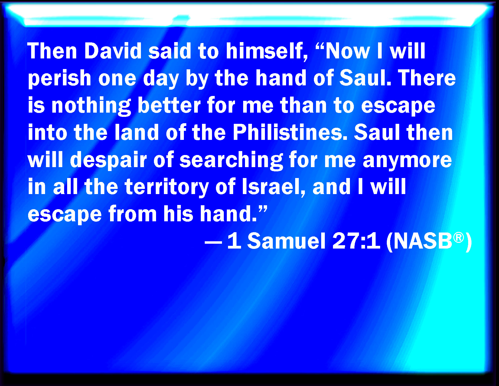 1 Samuel 27:1 And David said in his heart, I shall now perish one day by the hand of Saul: there is nothing better for me than that I should speedily escape into the land of the Philistines; and Saul shall despair of me, to seek me any more in any coast of Israel: so shall I escape out of his hand.