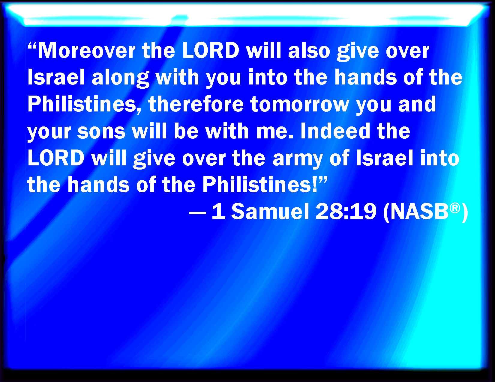 1 Samuel 28:19 Moreover the LORD will also deliver Israel with you into the hand of the Philistines: and to morrow shall you and your sons be with me: the LORD also shall deliver the host of Israel into the hand of the Philistines.