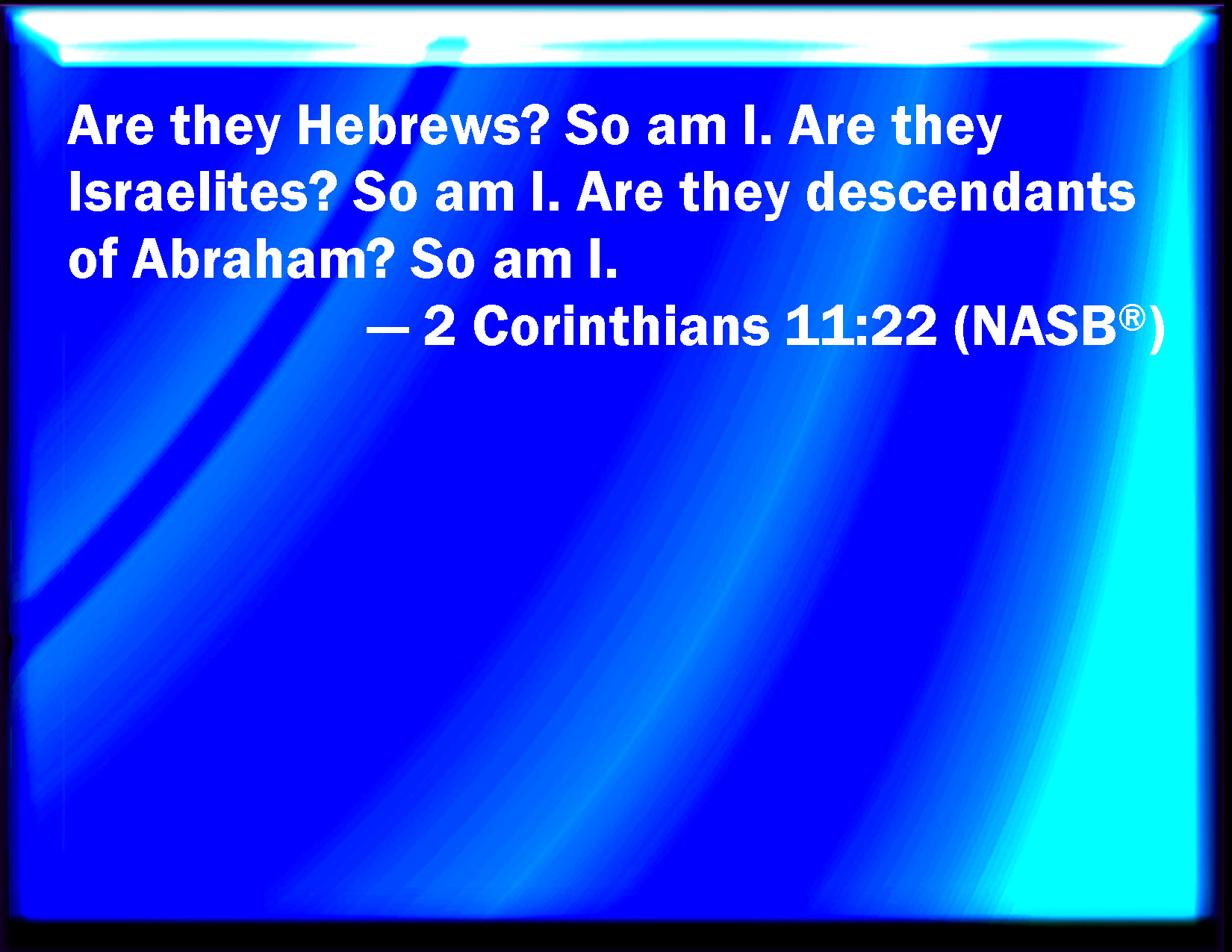 2 Corinthians 11:22 Are they Hebrews? so am I. Are they Israelites? so am I. Are they the seed of Abraham? so am I.