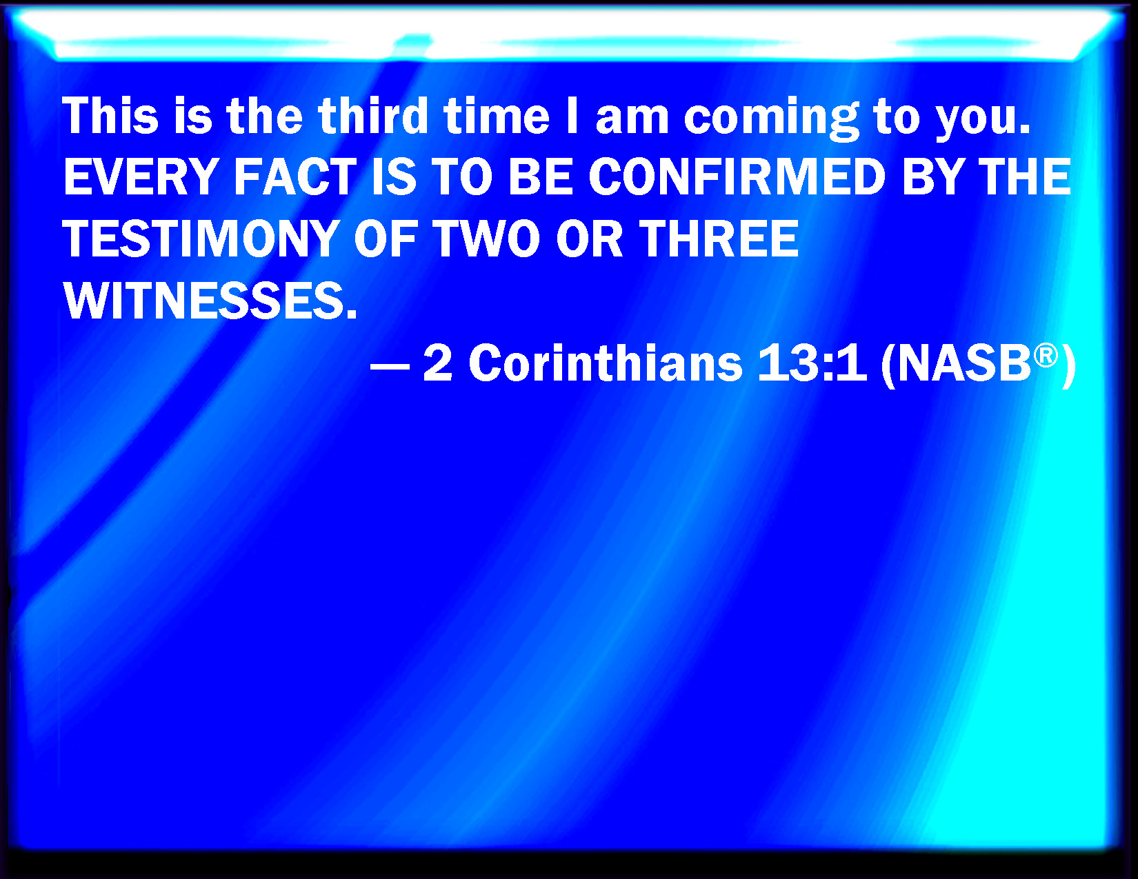 2 Corinthians 13:1 This is the third time I am coming to you. In the mouth of two or three witnesses shall every word be established.