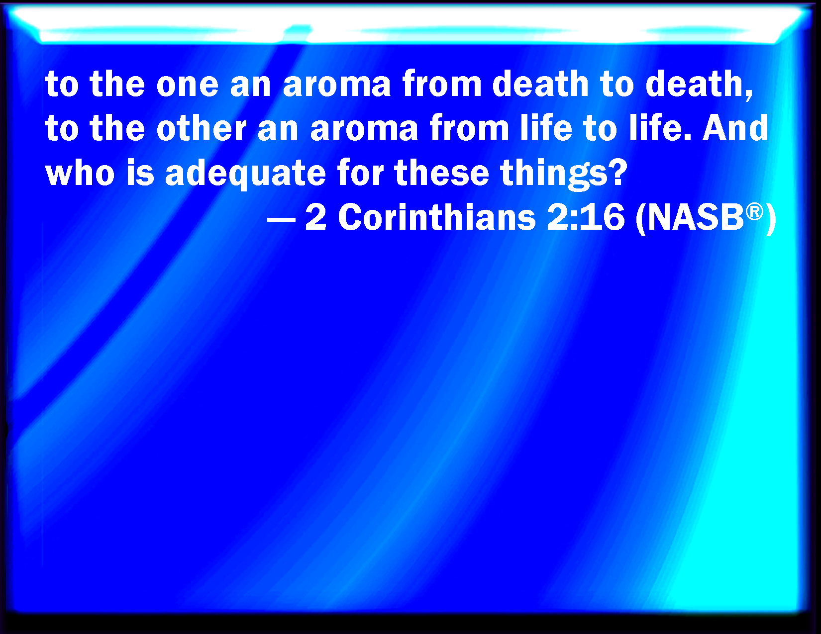 to the one a stench from death to death; to the other a sweet aroma from life to life. Who is sufficient for these things?