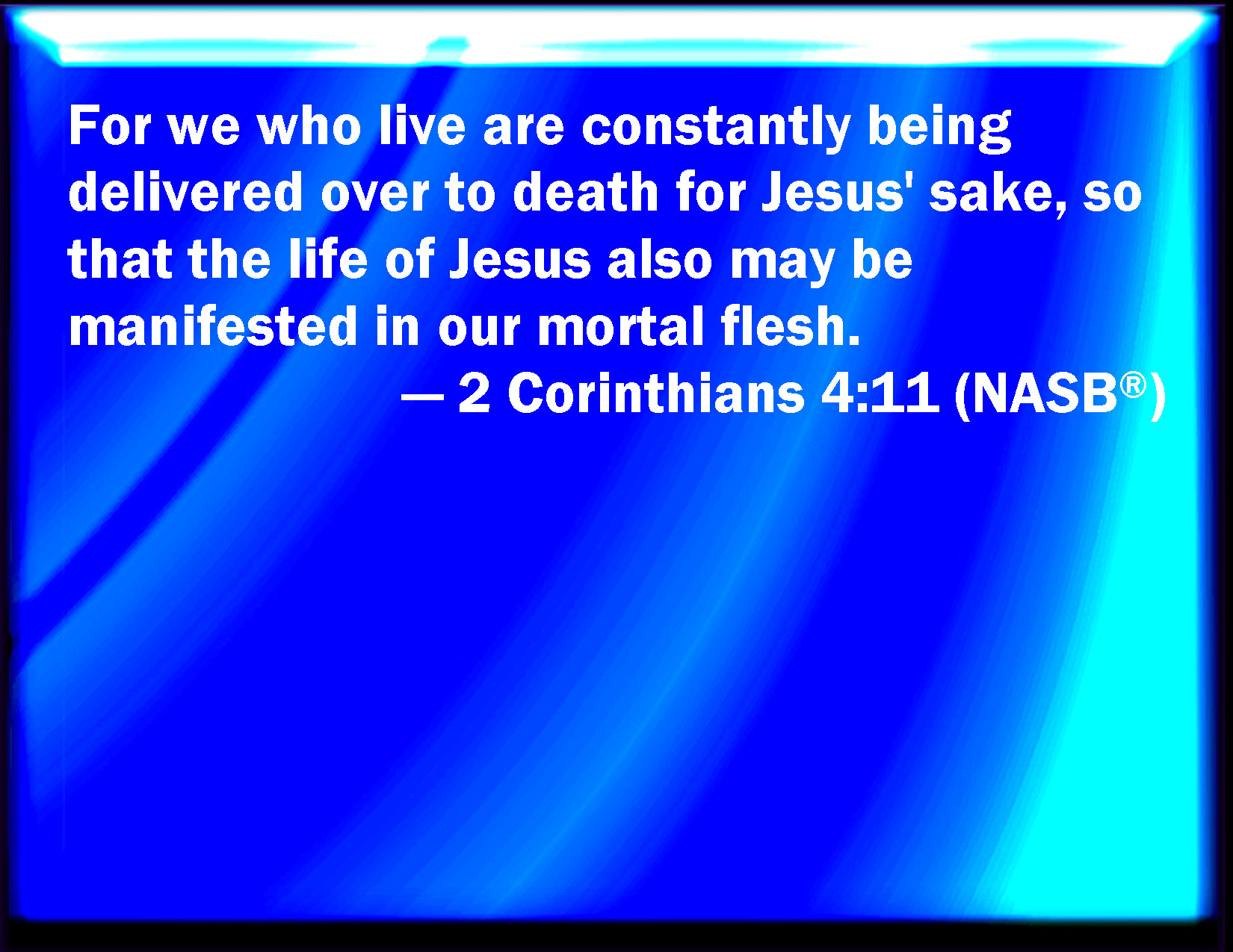 For we who live are always delivered unto death for Jesus' sake; that the life also of Jesus may be made manifest in our mortal flesh.
