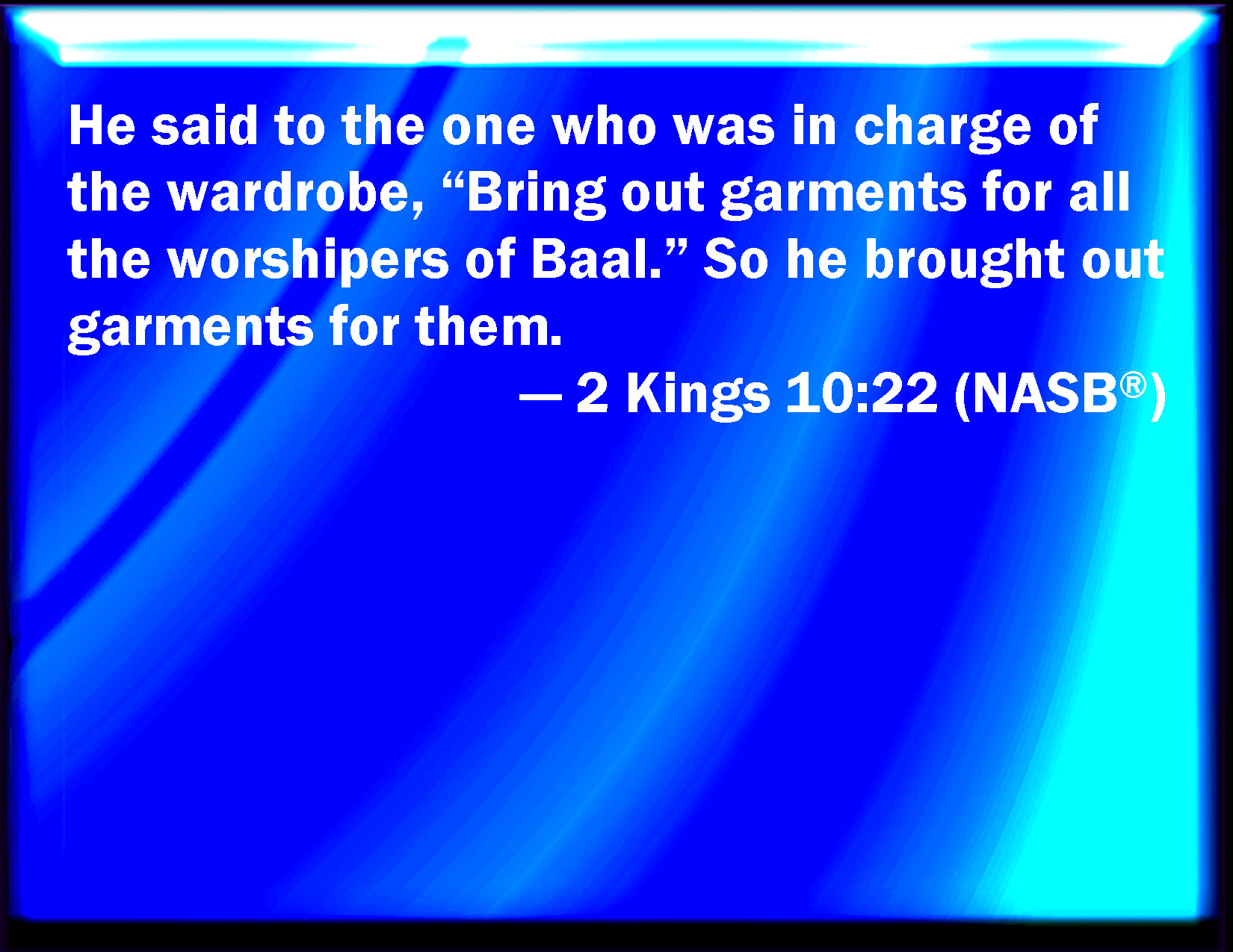 And he said to them that were over the wardrobe: Bring forth garments for all the servants of Baal. And they brought them forth garments.
