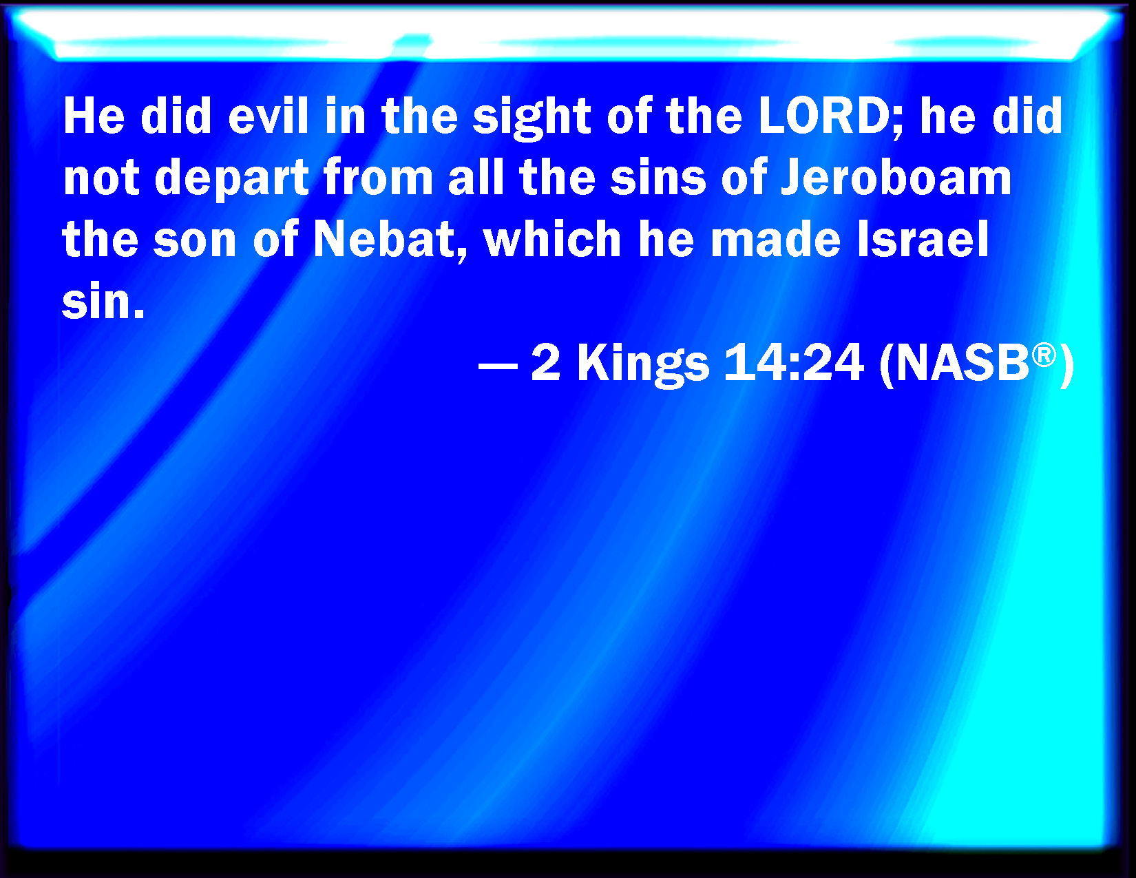 2 Kings 14:24 And he did that which was evil in the sight of the LORD: he departed not from all the sins of Jeroboam the son of Nebat, who made Israel to sin.