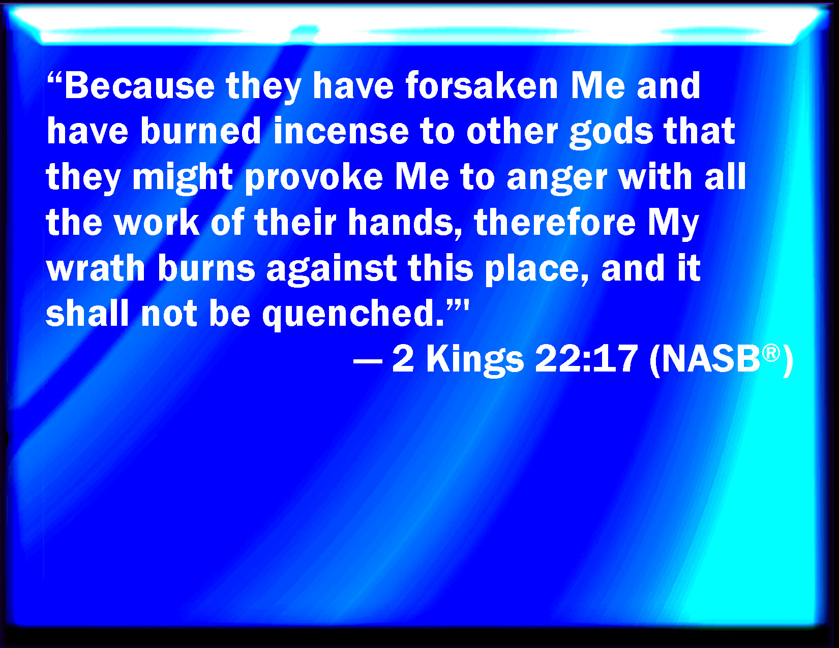 2 Kings 22:17 Because they have forsaken me, and have burned incense to other gods, that they might provoke me to anger with all the works of their hands; therefore my wrath shall be kindled against this place, and shall not be quenched.