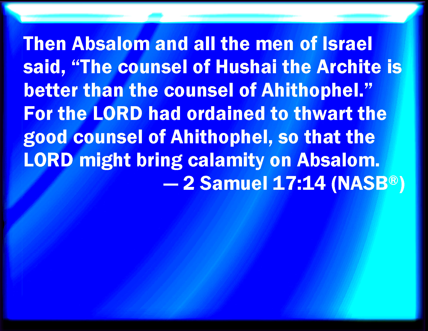 WBT:  And Absalom and all the men of Israel said, The counsel of Hushai the Archite is better than the counsel of Ahithophel. For the LORD had appointed to defeat the good counsel of Ahithophel, to the intent that the LORD might bring evil upon Absalom.