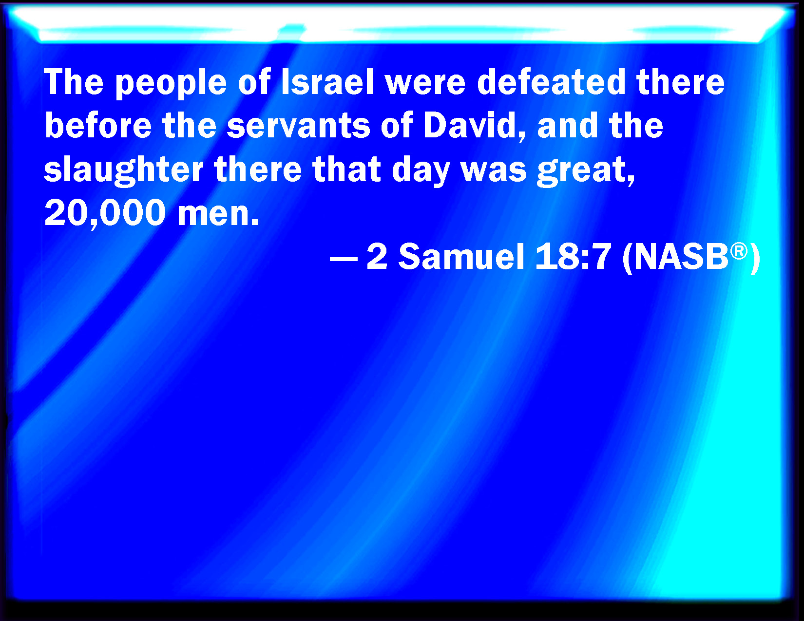 2 Samuel 18:7 Where the people of Israel were slain before the servants of David, and there was there a great slaughter that day of twenty thousand men.