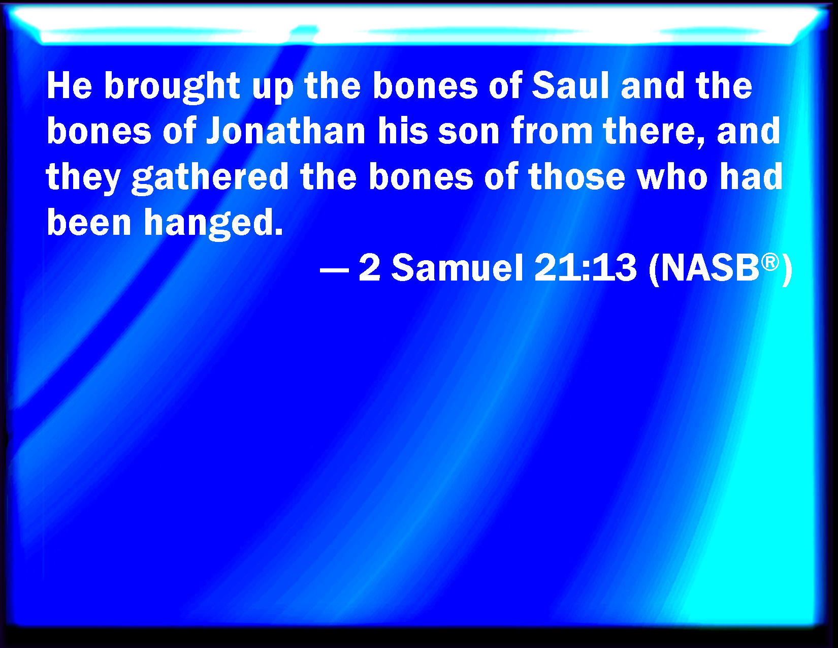 2 Samuel 21:13 And he brought up from there the bones of Saul and the bones of Jonathan his son; and they gathered the bones of them that were hanged.