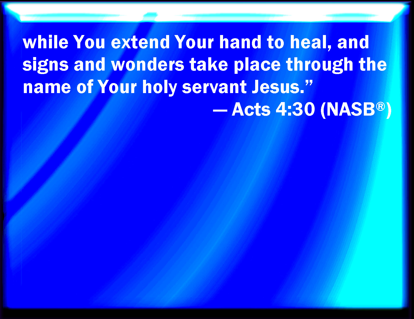 Acts 4:30 By stretching forth your hand to heal; and that signs and wonders may be done by the name of your holy child Jesus.
