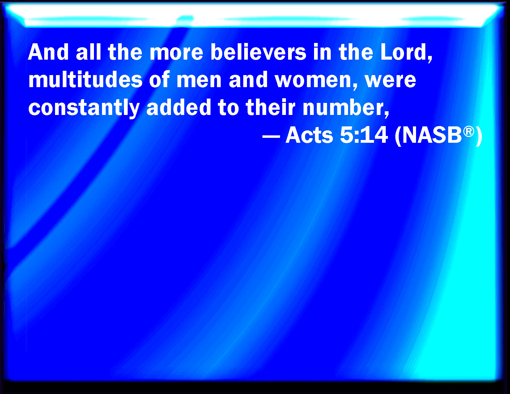 Acts 5:14 And believers were the more added to the Lord, multitudes both of men and women.)