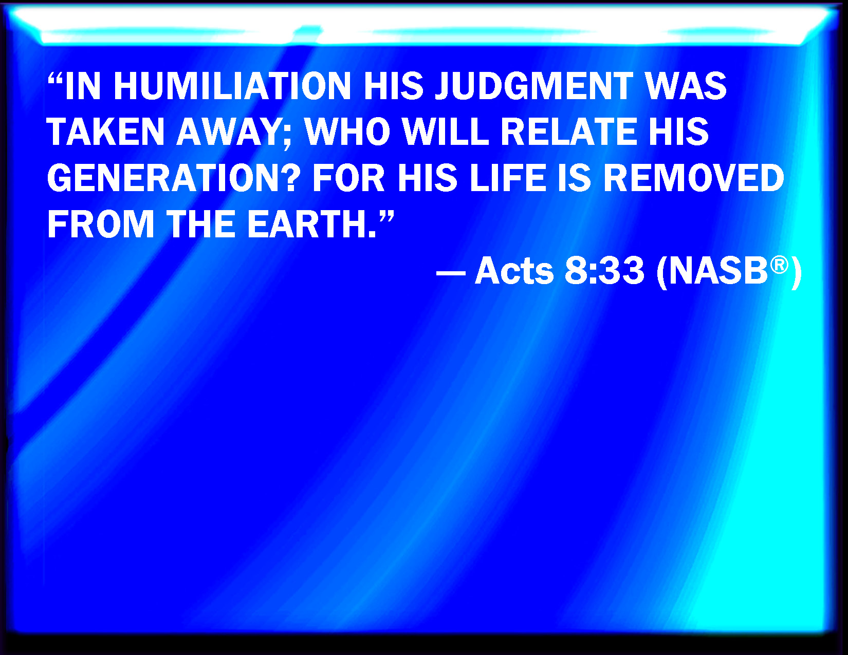Acts 8:33 In his humiliation his judgment was taken away: and who shall declare his generation? for his life is taken from the earth.