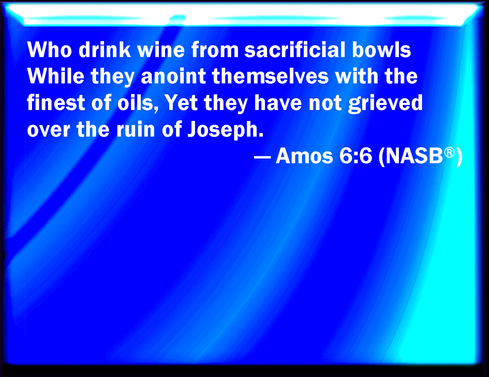 Amos 6:6 That drink wine in bowls, and anoint themselves with the chief ointments: but they are not grieved for the affliction of Joseph.