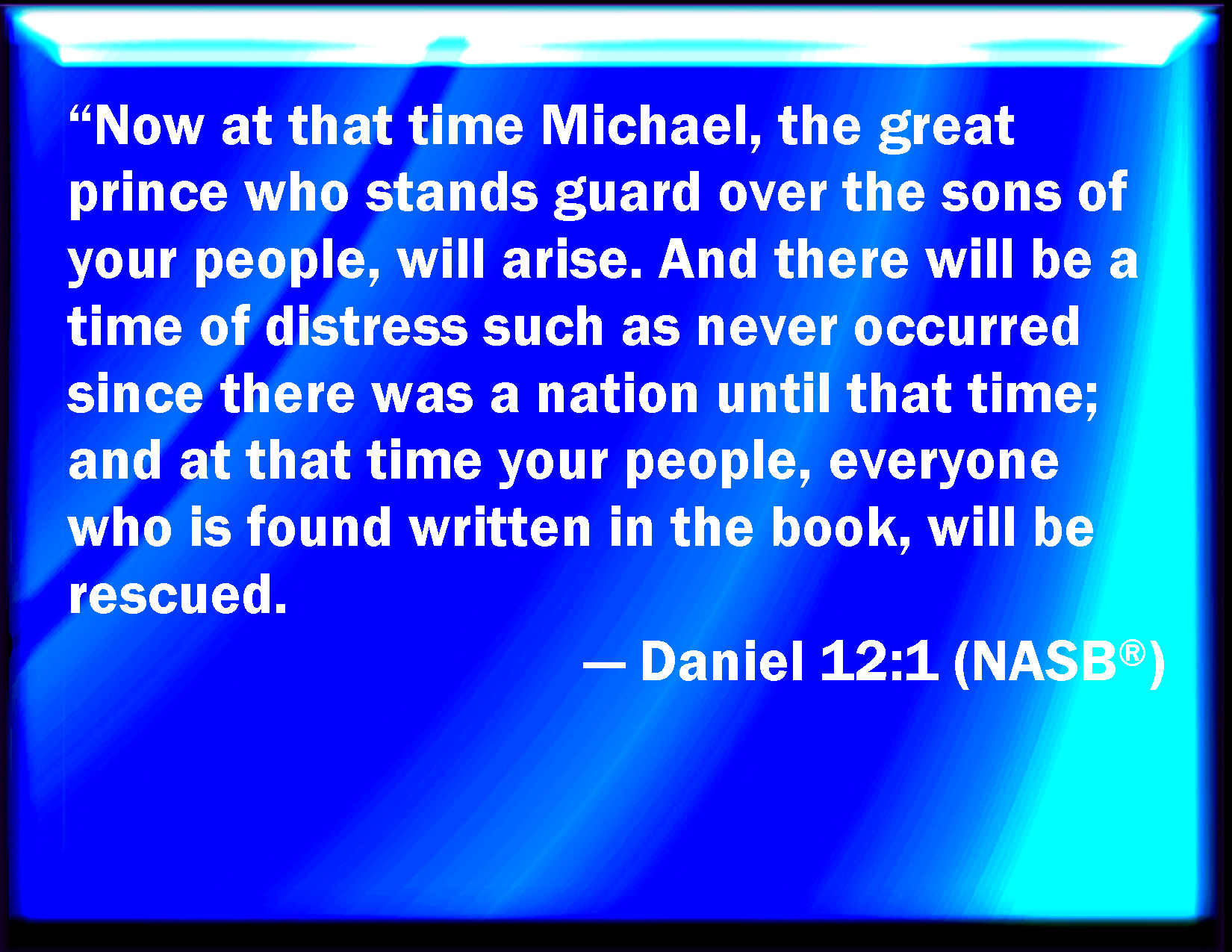 And at that time shall Michael stand up, the great prince who standeth for the children of thy people; and there shall be a time of distress, such as never was since there was a nation until that time. And at that time thy people shall be delivered, every one that is found written in the book.