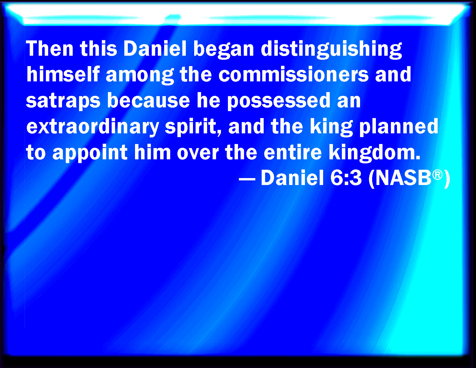 Then this Daniel was distinguished above the presidents and the satraps, because an excellent spirit was in him; and the king thought to set him over the whole realm.